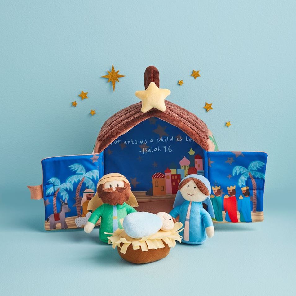 The Musical Nativity Plush Set is a delightful 4-piece set that brings the story of the Nativity to life. This interactive plush Nativity stable includes the key characters of Mary, Joseph, and baby Jesus, allowing children to engage in imaginative play and recreate the iconic scene. Adding to the enchantment, the star on top of the stable features a sound chip that plays the beloved Christmas carol "Away in a Manger." This musical element adds a touch of magic and creates a truly immersive experience for children and adults alike. Designed for children aged 18 months and above, this plush set is made from high-quality polyester material that is soft to the touch and safe for little ones to play with. The plush figures are perfectly sized at 8" x 8", making them easy for small hands to hold and maneuver. Whether it's for playtime, holiday decorations, or as a thoughtful gift, the Musical Nativity Plush Set is a wonderful addition to any Christmas collection. It not only entertains and engages children but also helps them learn about the story of the Nativity in a fun and interactive way.