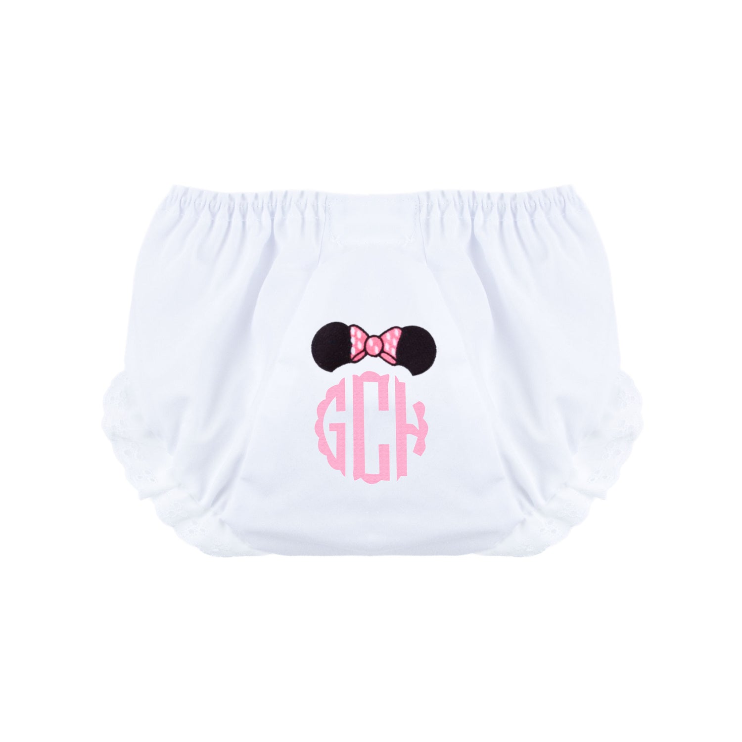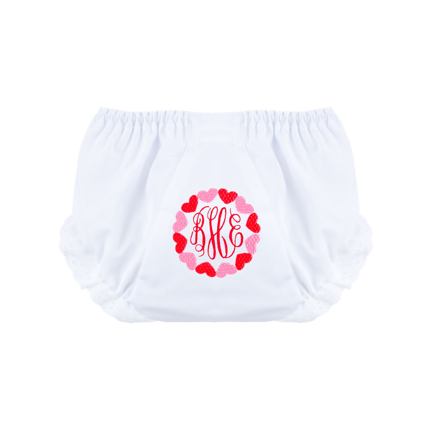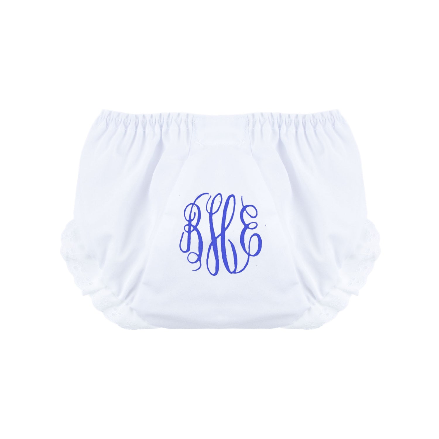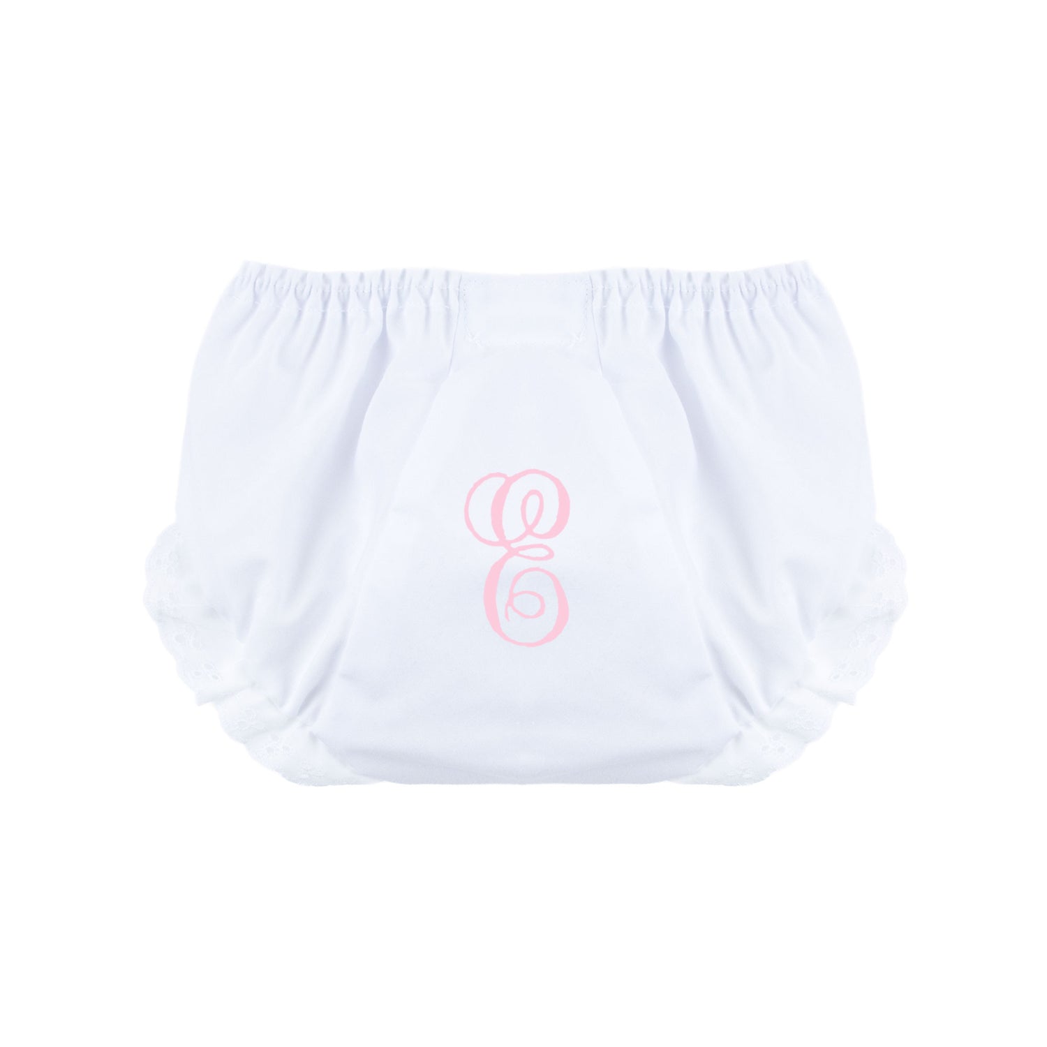 These classic girl's bloomers with eyelet trim are a perfect match to any outfit! Add a monogram to personalize the look. Sizes P1-24m are baby girl diaper covers. Sizes 2T-6 year are toddler and big girl panties.