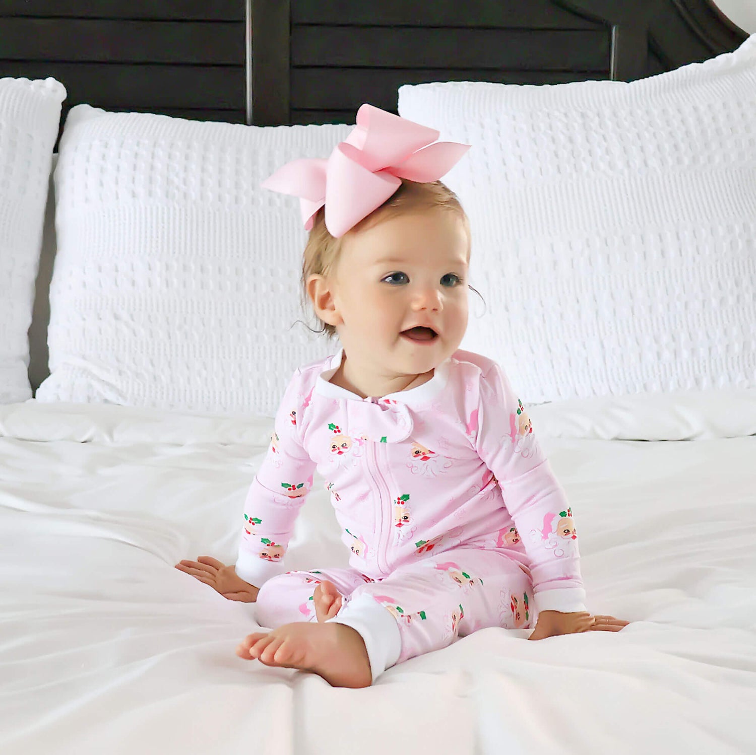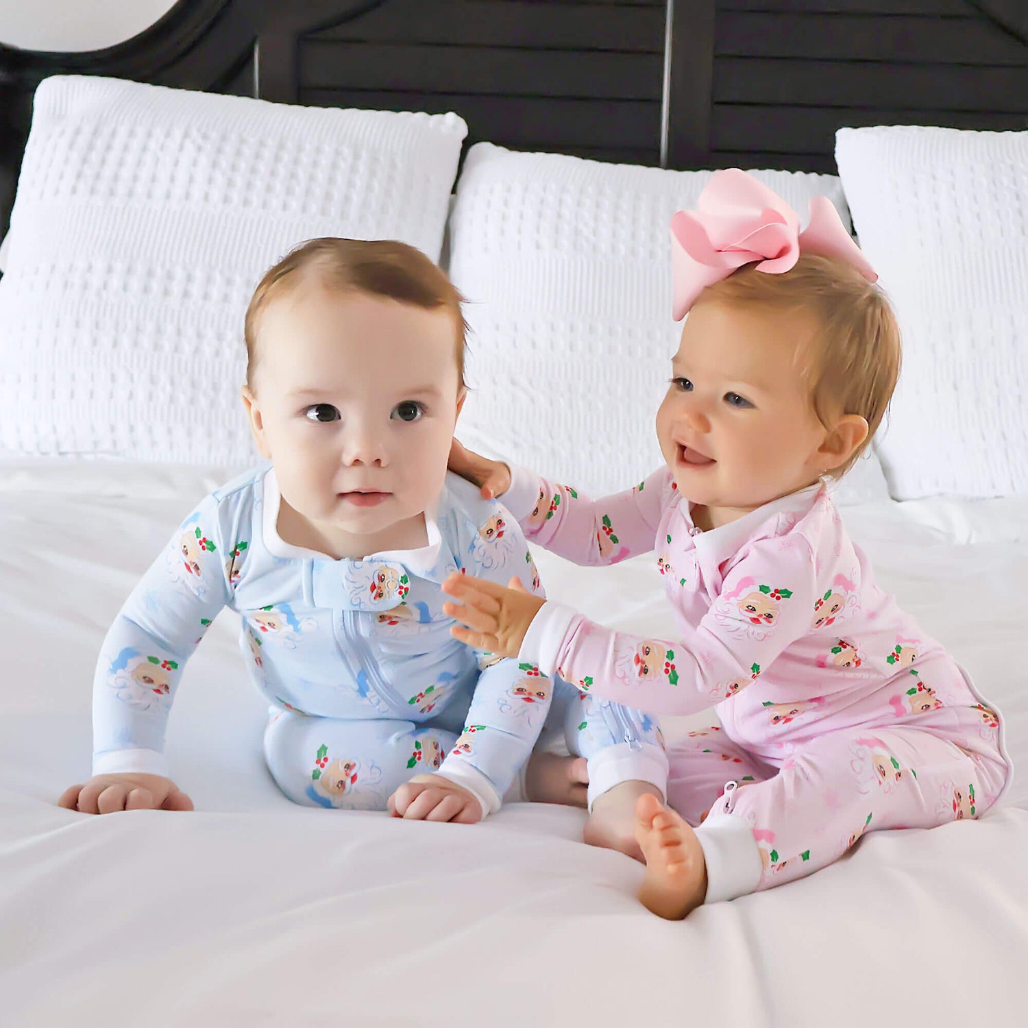 Make this Christmas even more magical with our Vintage Santa Pink Zip Sleeper! This soft and cozy one-piece sleeper features a happy pink Santa print with white ribbing. The snug long sleeves and easy zip-up front make dressing simple, while the sewn-down back flap adds an extra touch of charm. Add a monogram to make this holiday look even more special!