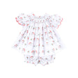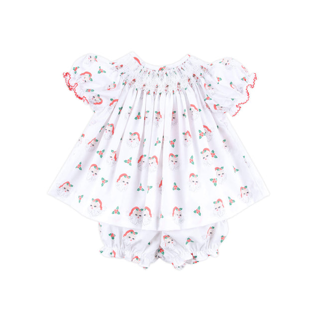 Vintage Santa White Print Smocked Bloomer Set