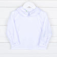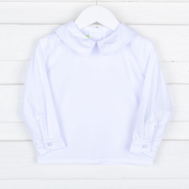 Wear this classic white woven boy's undershirt all fall and winter long under Jon Jons, Longalls or alone with pants. Long sleeve. Peter Pan collar. Buttons in the back and at cuffs. Available in baby, toddler and big boy sizes.