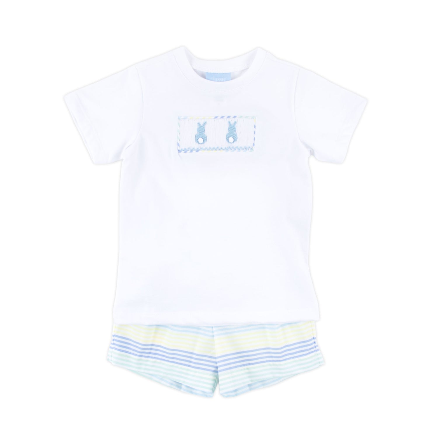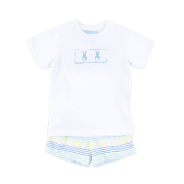 Spring Love Stripe Bunny Smocked Short Set