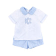 Your little sweetie will look precious in our Light Blue Windowpane Collared Short Set! This darling white short-sleeve shirt with an elegant collar, coordinated with light blue windowpane shorts, is perfect for an Easter egg hunt. Adding a monogram gives an extra-special touch.