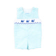The Pacific Whale Smocked Mint Stripe Jon Jon is the perfect summer outfit for seaside days and sunny adventures. Designed in fresh mint stripes with sweet hand-smocked whales, this charming Jon Jon captures a playful seaside look. Shoulder buttons and snaps at the stride make diaper changes quick and easy.