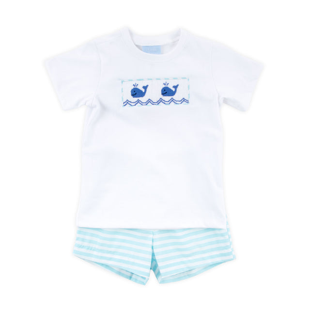 Pacific Whale Smocked Mint Stripe Short Set