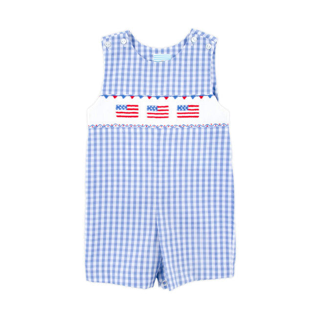Raise the Flag Blue Gingham Smocked Jon Jon
