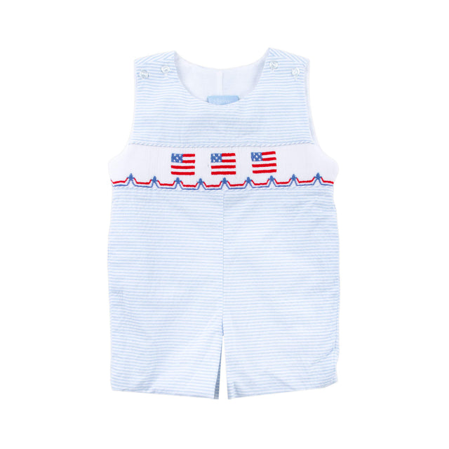 Flag Smocked Blue Stripe Seersucker Jon Jon