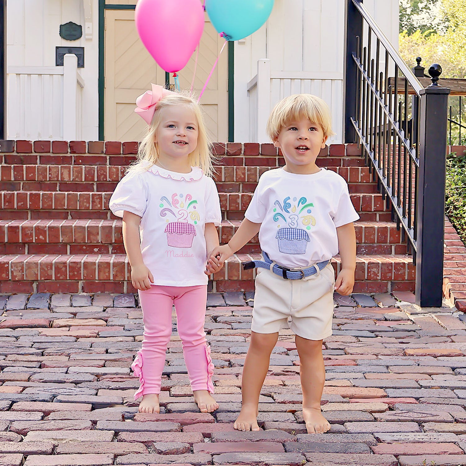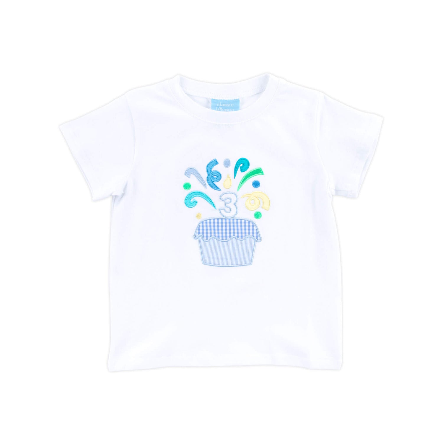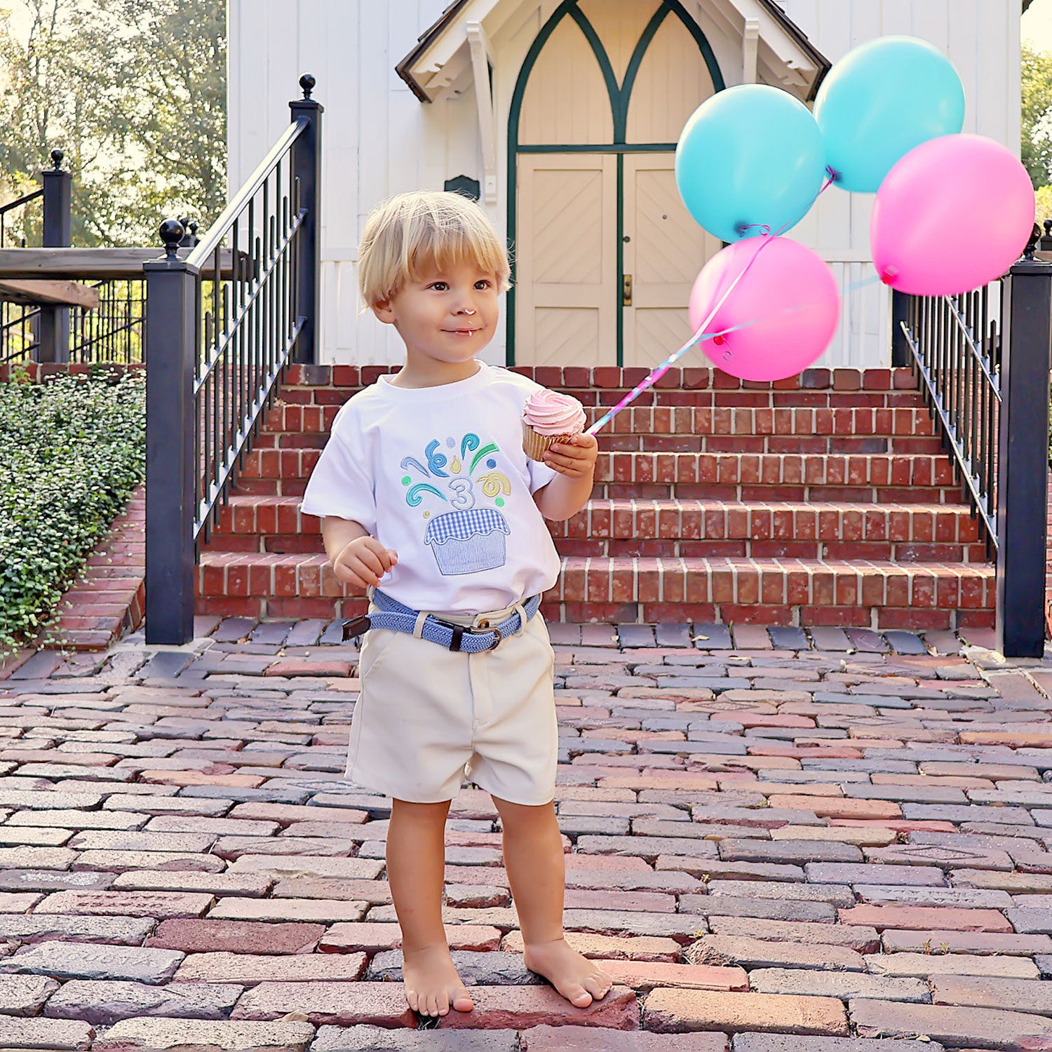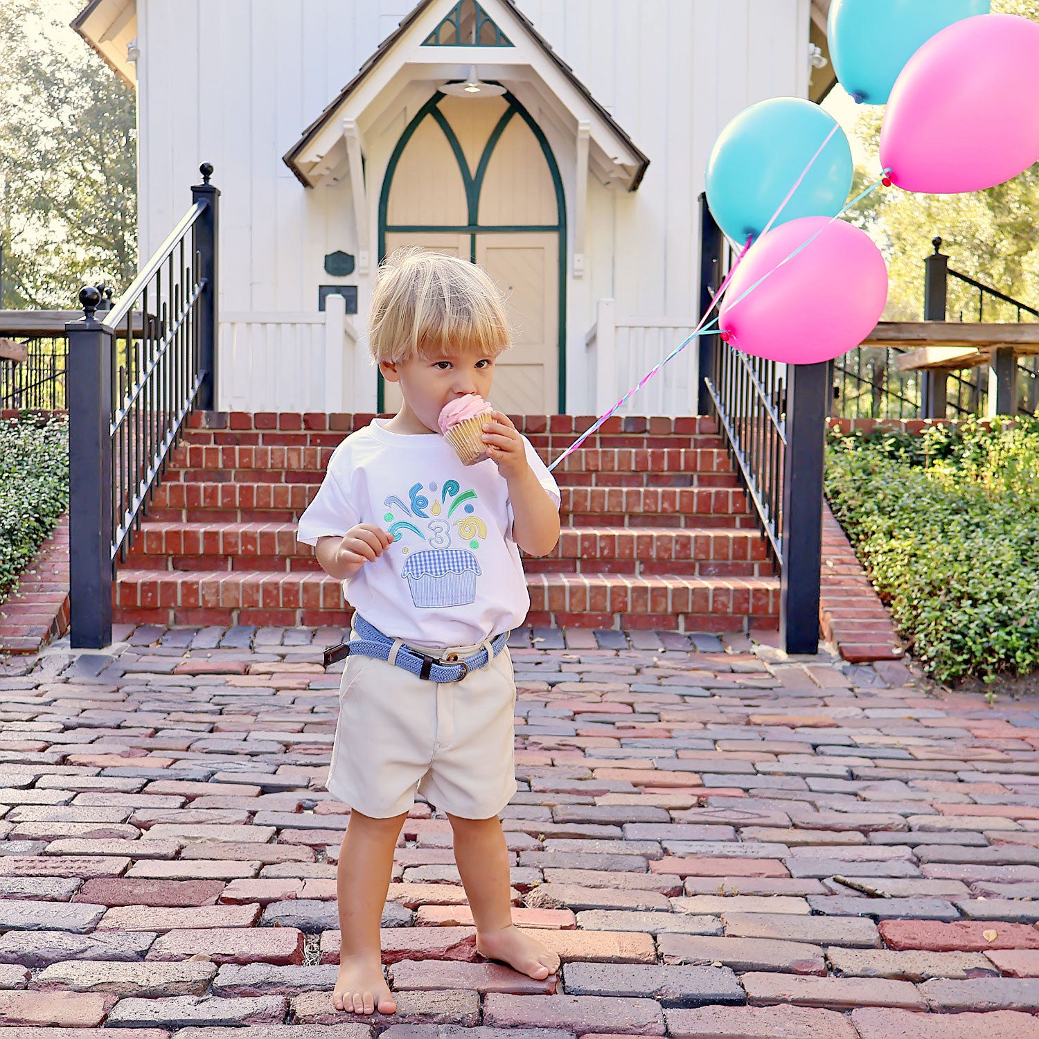 This Third Birthday Cupcake Short Sleeve Shirt is perfect for birthday fun, comfort, and cuteness! Featuring an adorable and fun 3rd birthday cupcake applique, it’s a sweet and stylish choice. Don’t forget to add a name monogram for a special touch!