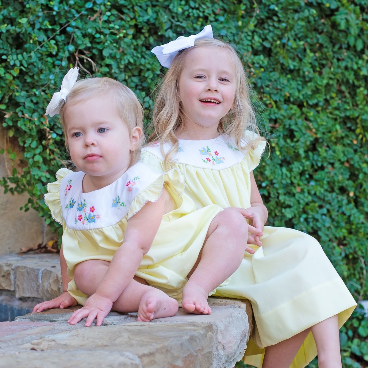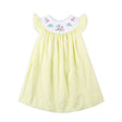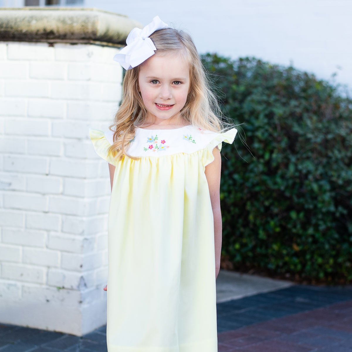 Your little chickadee will look oh so sweet in our Embroidered Bird Yoke Neck Dress in Light Yellow Pique. This adorable dress features a yoke neck adorned with embroidered birds and flowers.