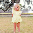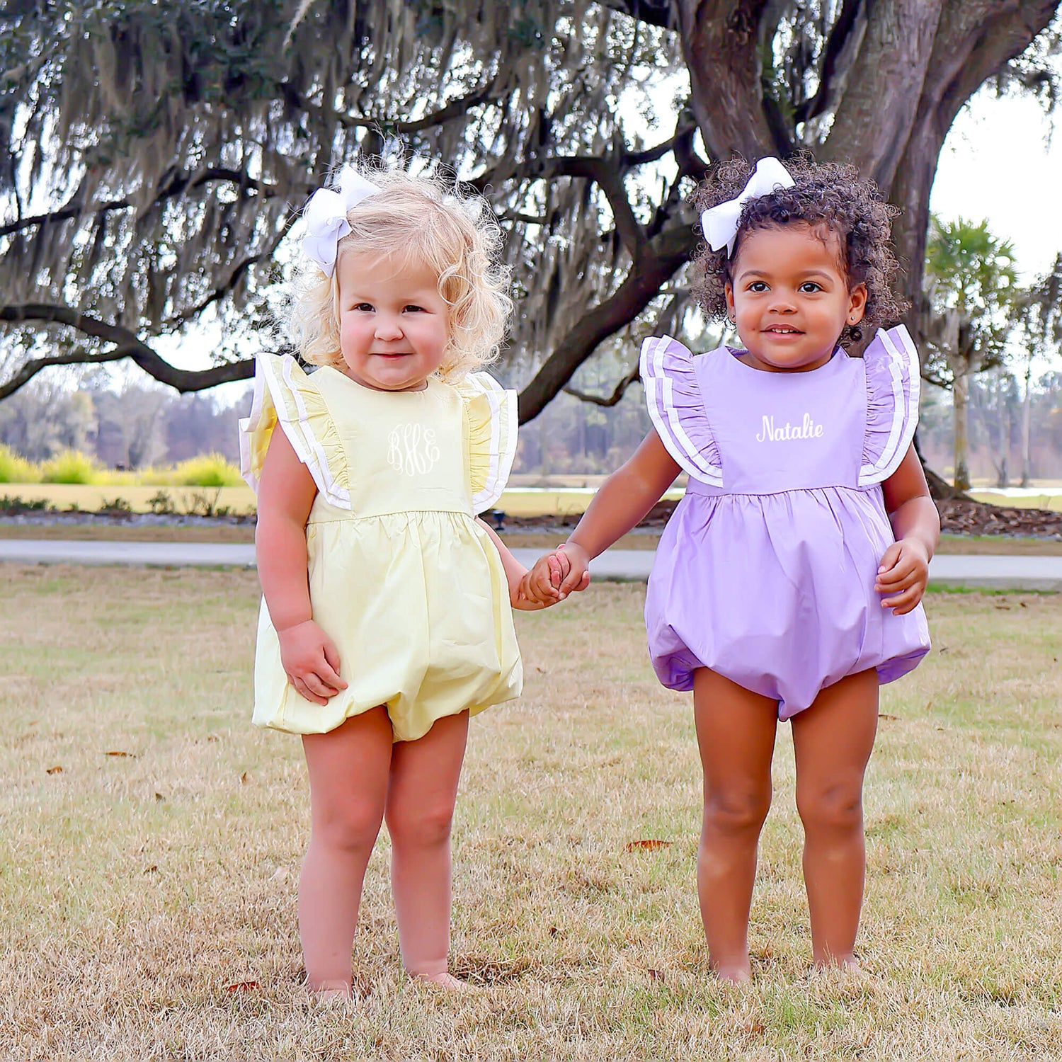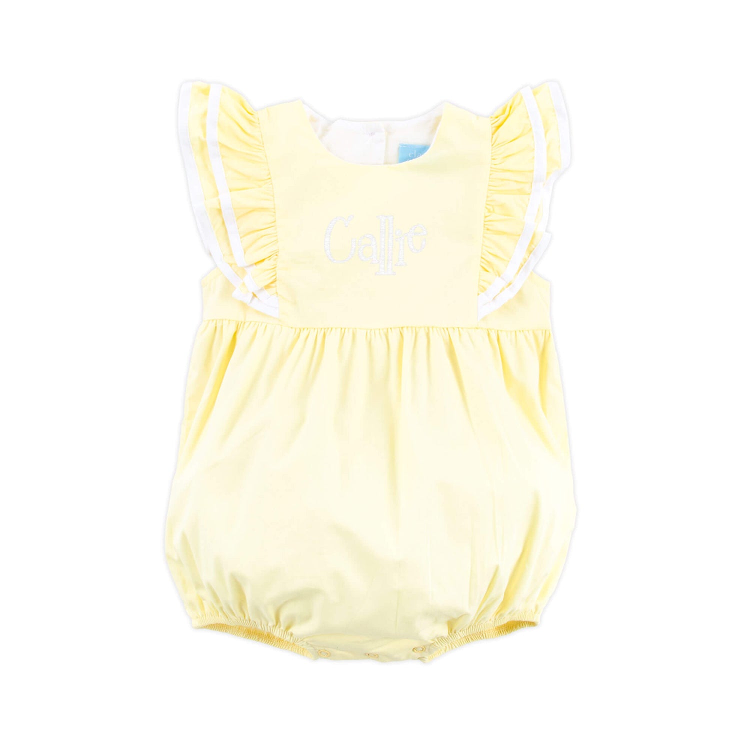 Elevate your little one's spring and summer wardrobe with our enchanting Yellow Alice Bubble. This delightful Alice-style bubble is not only perfect for any special occasion but also adds a touch of charm to everyday moments. Designed from a solid yellow fabric, the bubble features intricately designed ruffles adorned with white tape trim, creating a whimsical and stylish look. With the convenience of snaps in stride, dressing up becomes a breeze for your little one. To make this outfit truly unique, add a monogram for a personalized touch, ensuring your little one stands out with grace and elegance at every event.