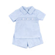 Hop Hop Bunnies Smocked Light Blue Gingham Collared Short Set
