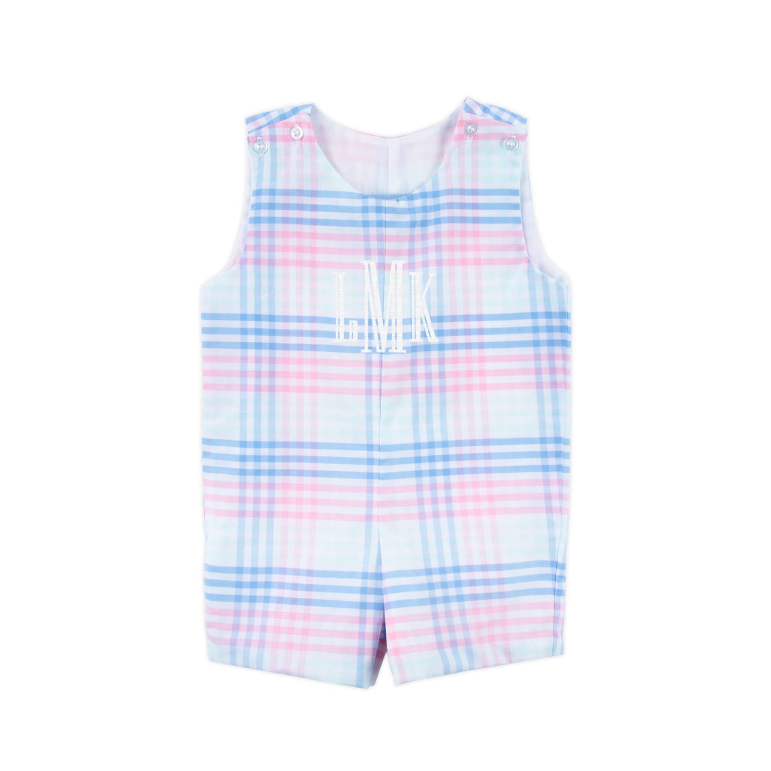 Get ready for spring and summer fun in our Pastel Plaid Jon Jon! This adorable Jon Jon features playful pastel plaid fabric, shoulder buttons, and snaps in the stride for easy changes. Add a monogram to make this outfit uniquely theirs.