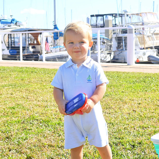 Nautical Adventure Light Blue Stripe Polo Romper