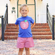 Have a fabulous first day of school in our Good Apple Short Set! This royal blue soft knit shirt features a large red gingham apple appliqué at the center. The set is coordinated with red gingham shorts for a classic school-day look. Add a monogram to the apple for a personalized touch!