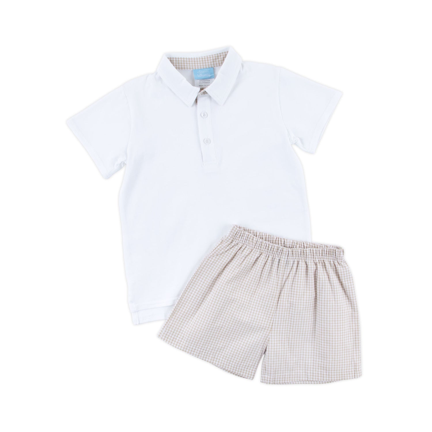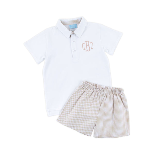 Khaki Gingham Polo Short Set