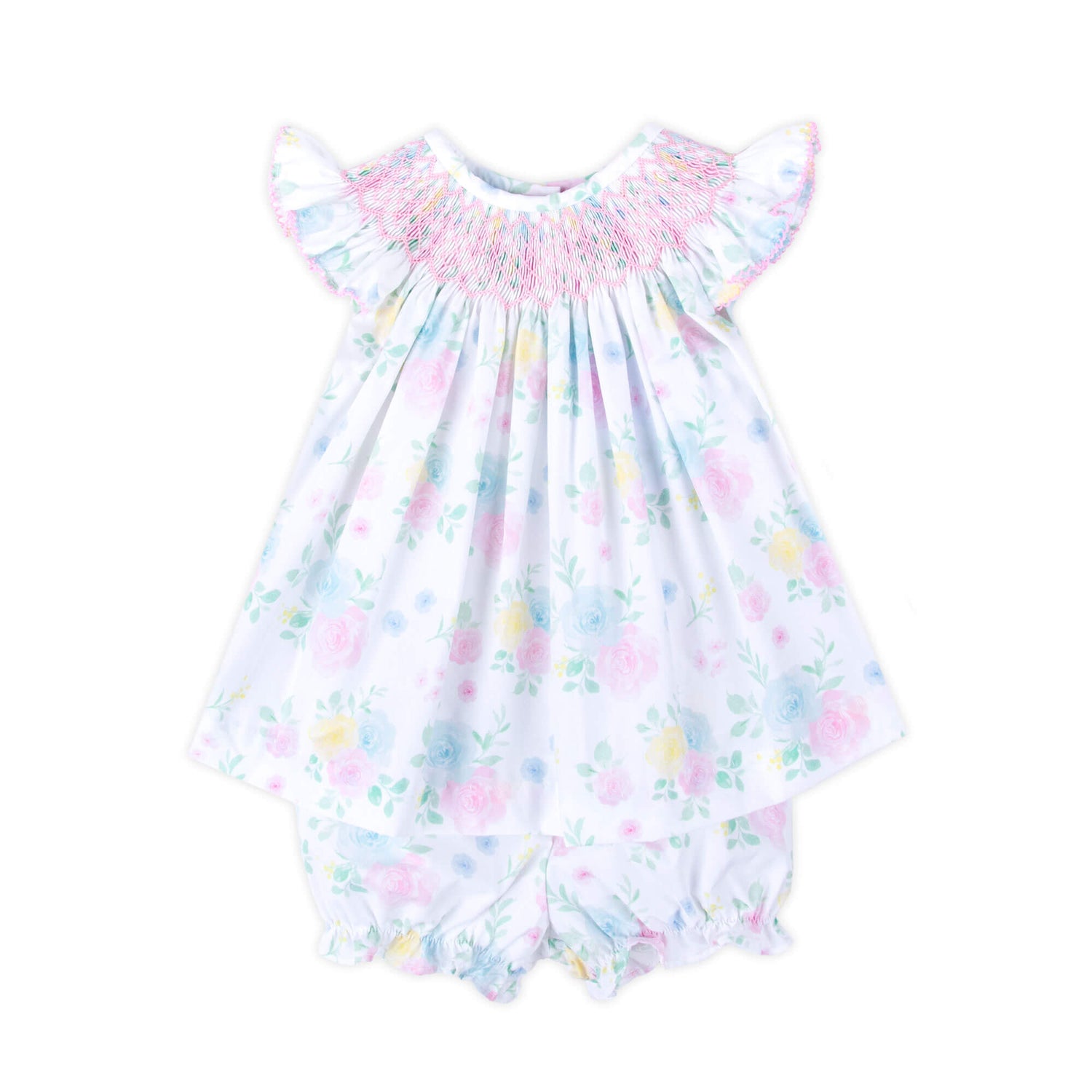 Sunshine Floral Smocked Angel Sleeve Bloomer Set
