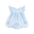 Celebrate Easter in our Easter Eggs & Bows Light Blue Amelia Skirt Bubble! This darling skirt bubble features delicate Easter egg embroidery and an adorable scalloped hem. Snaps in stride allow for easy changing. Add a monogram for a personalized touch that makes it extra special.