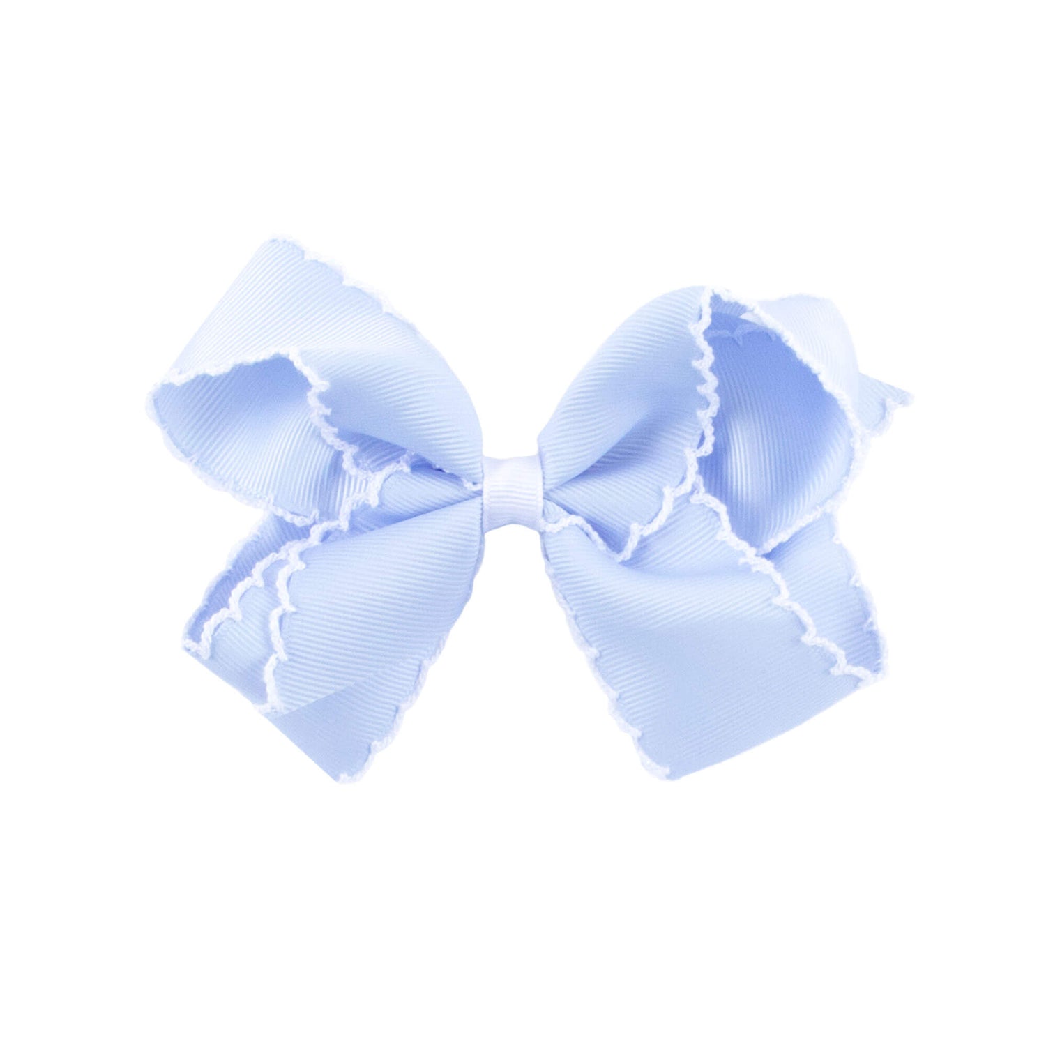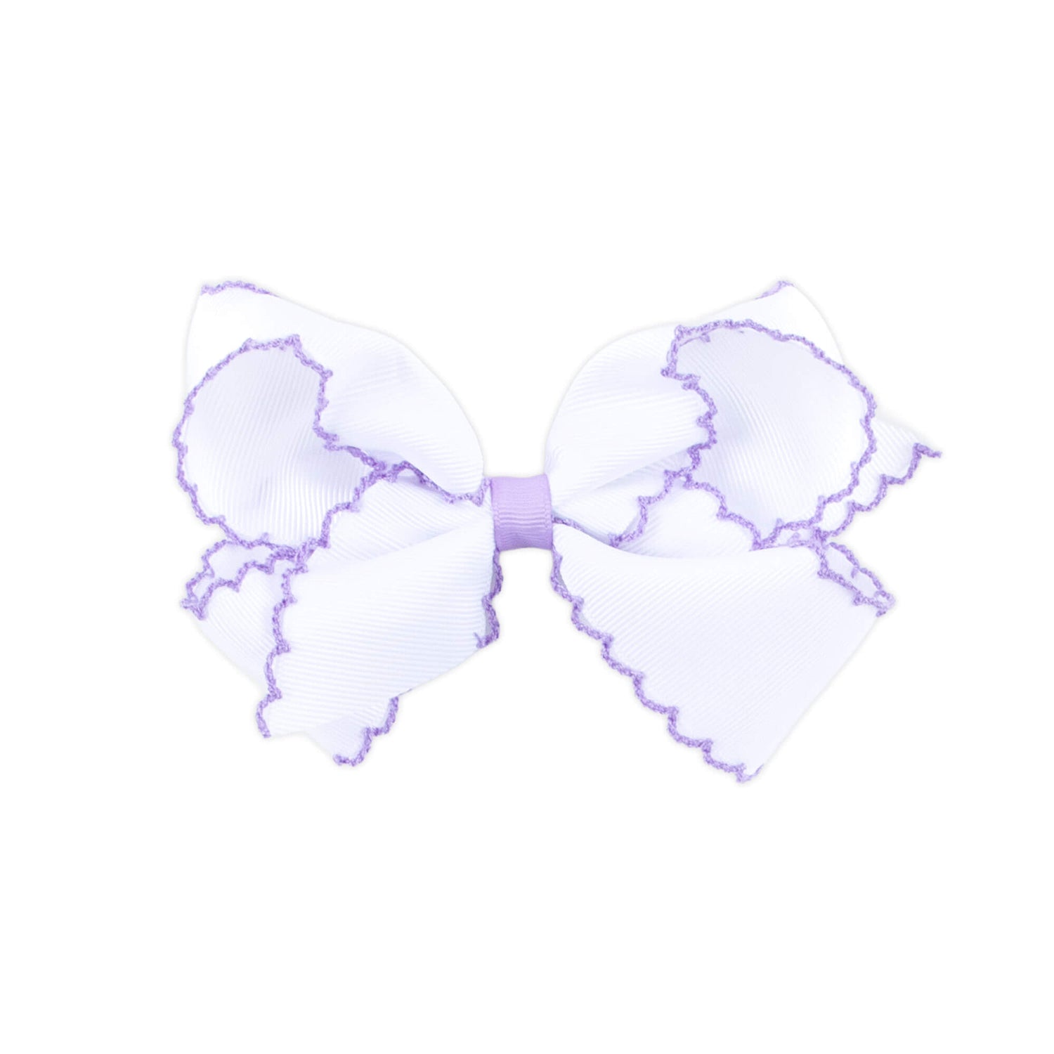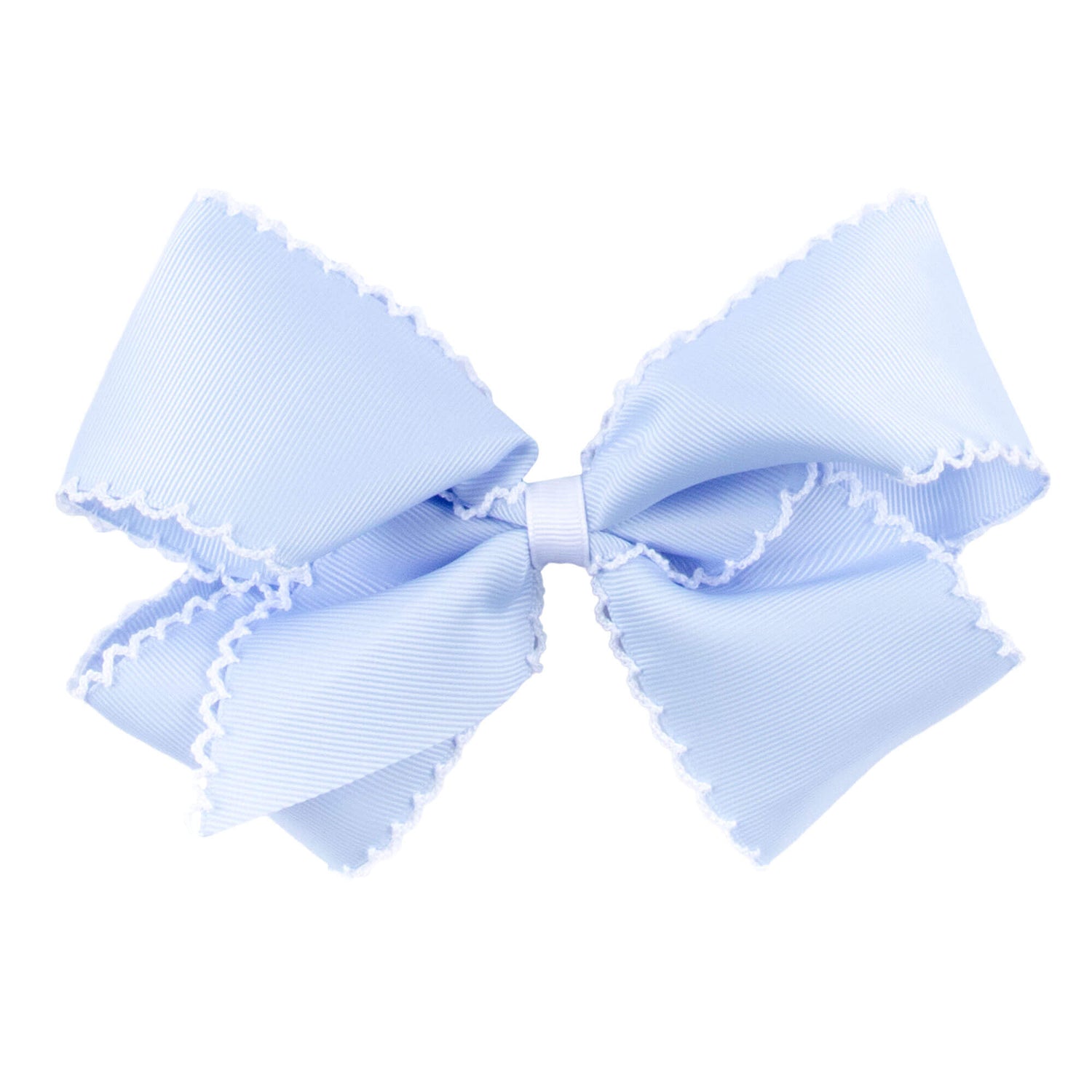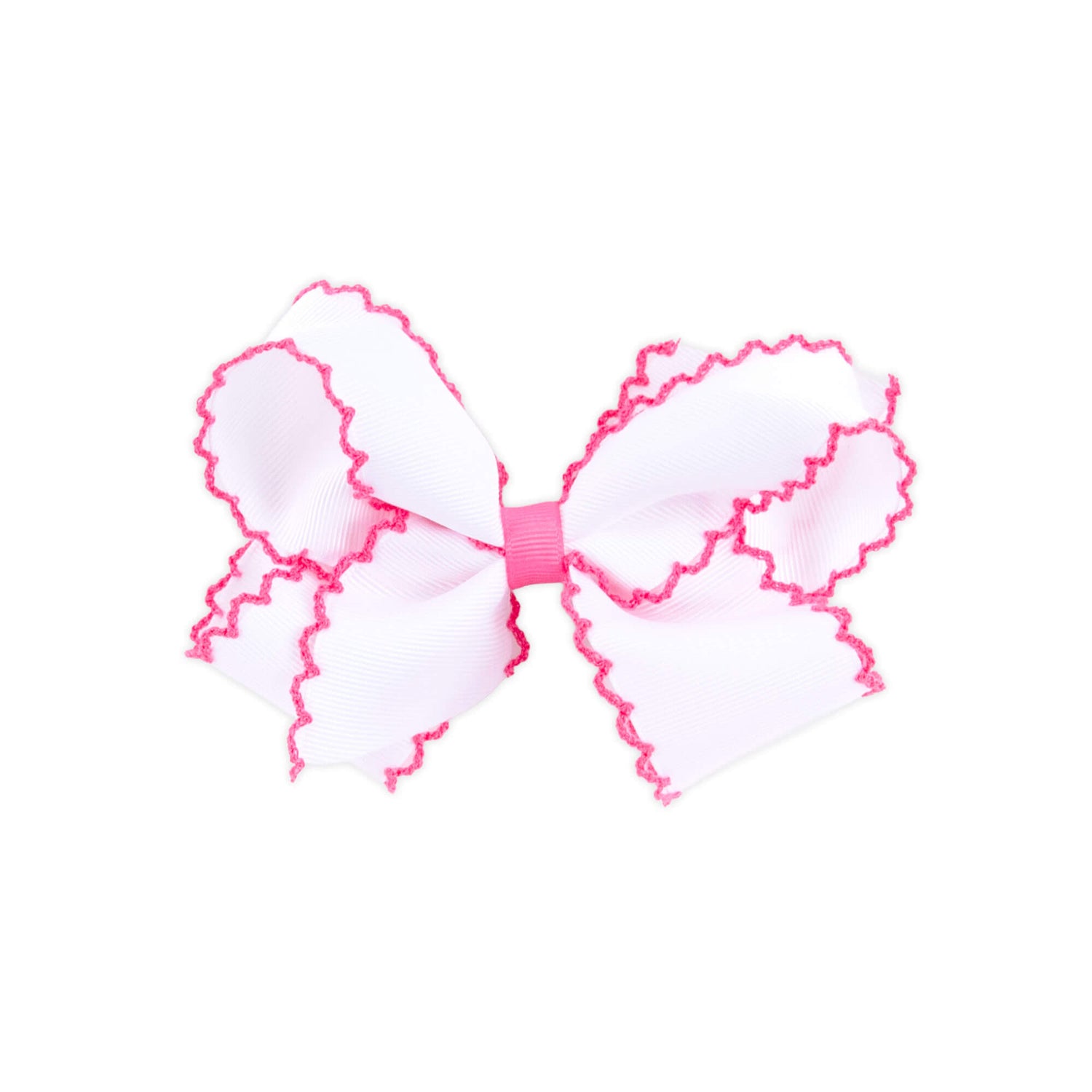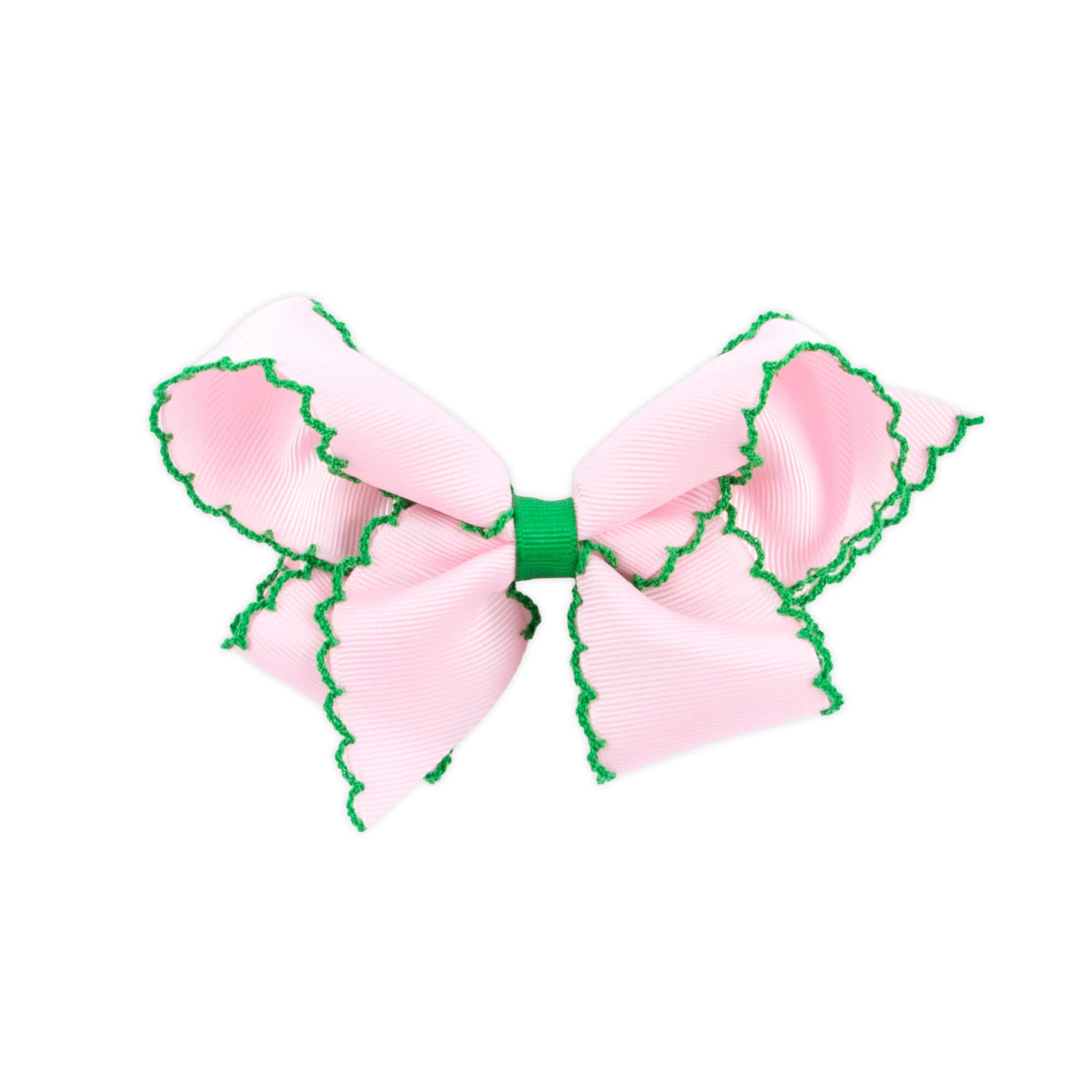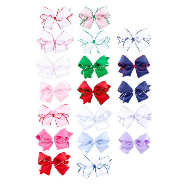 Our classic moonstitch bow is the sweetest finishing touch! Made from grosgrain ribbon with a contrasting moonstitch trim, this loop bow is attached to an alligator clip for easy wear. Perfect for school days, special occasions, or everyday wear, these bows are a must-have for adding that perfect finishing touch to any look.