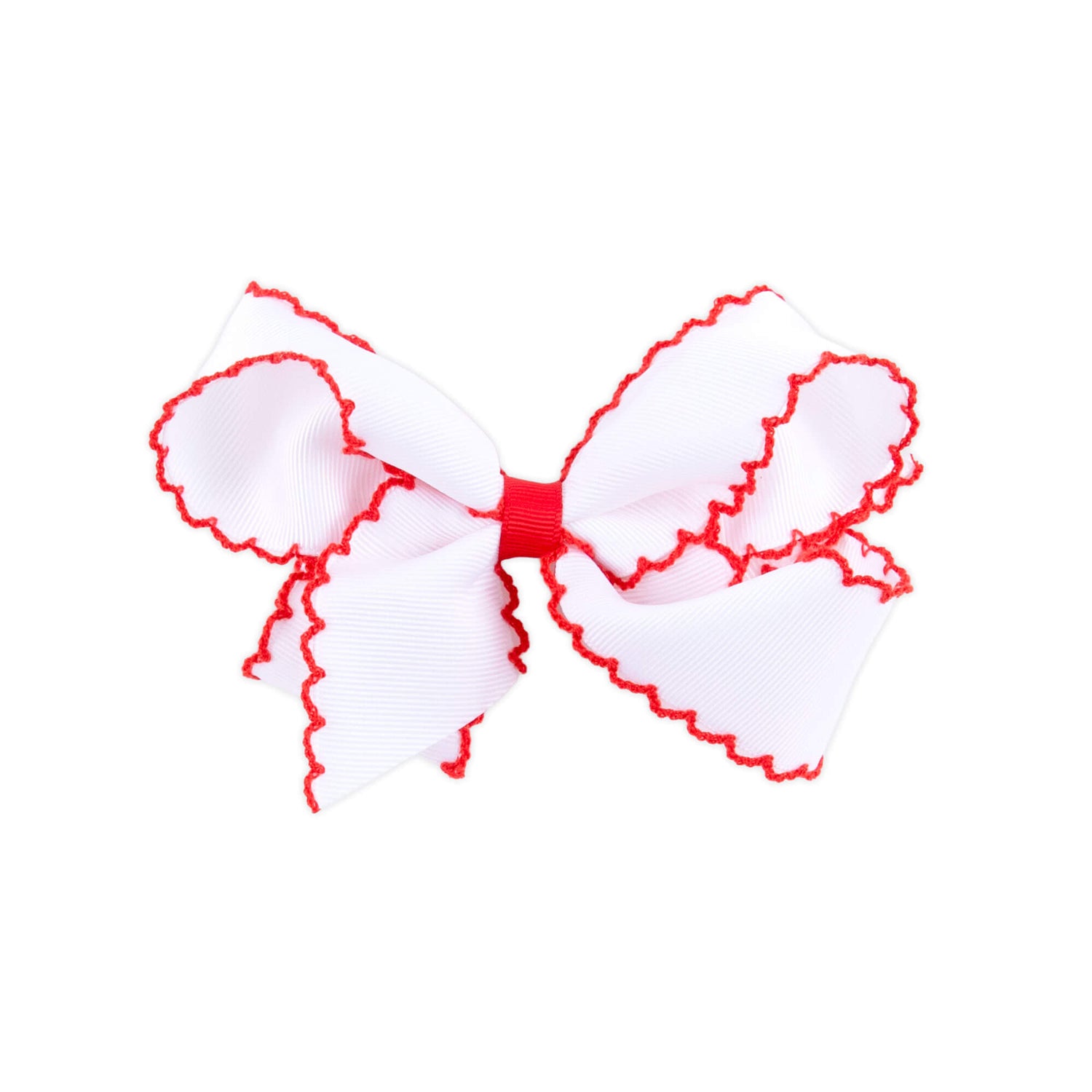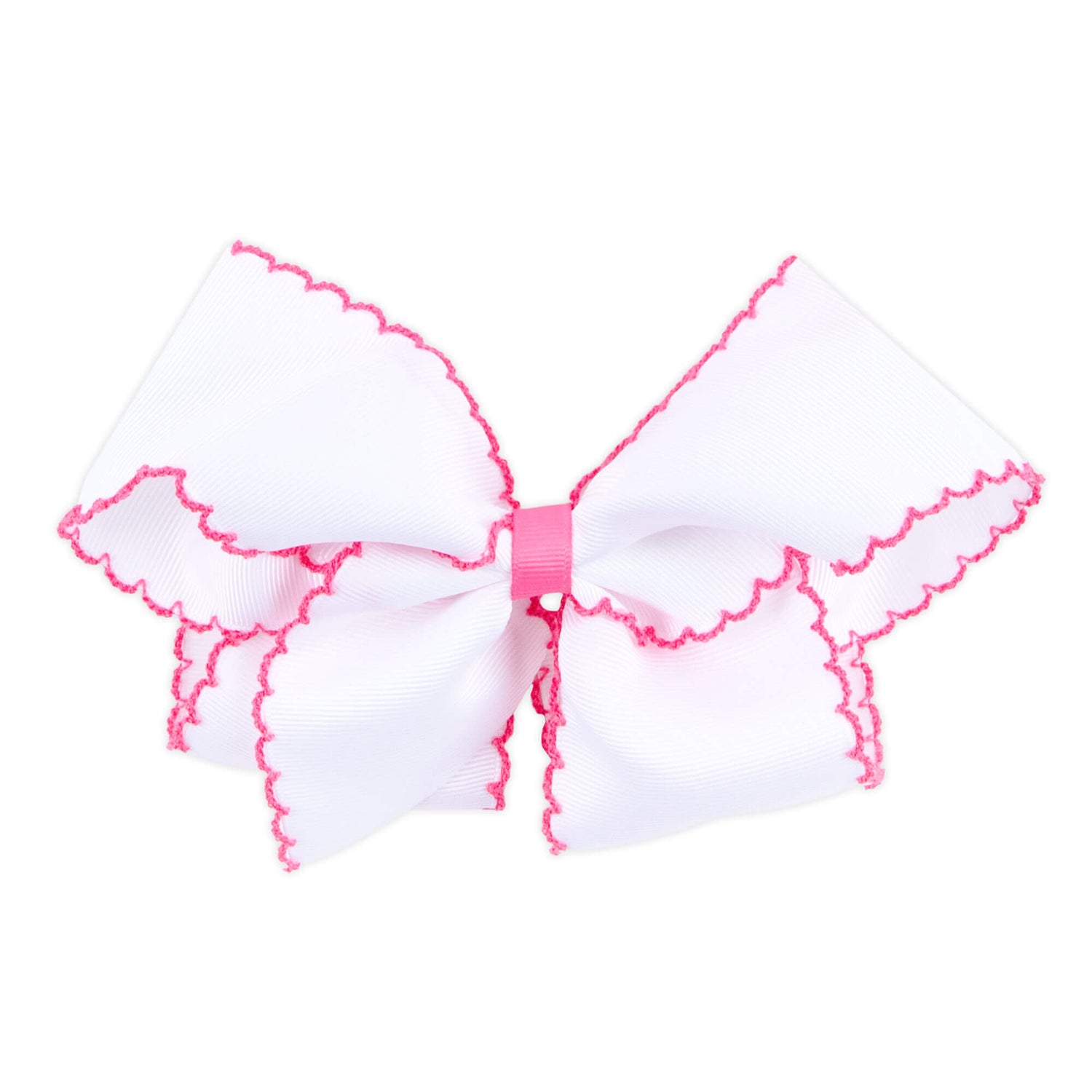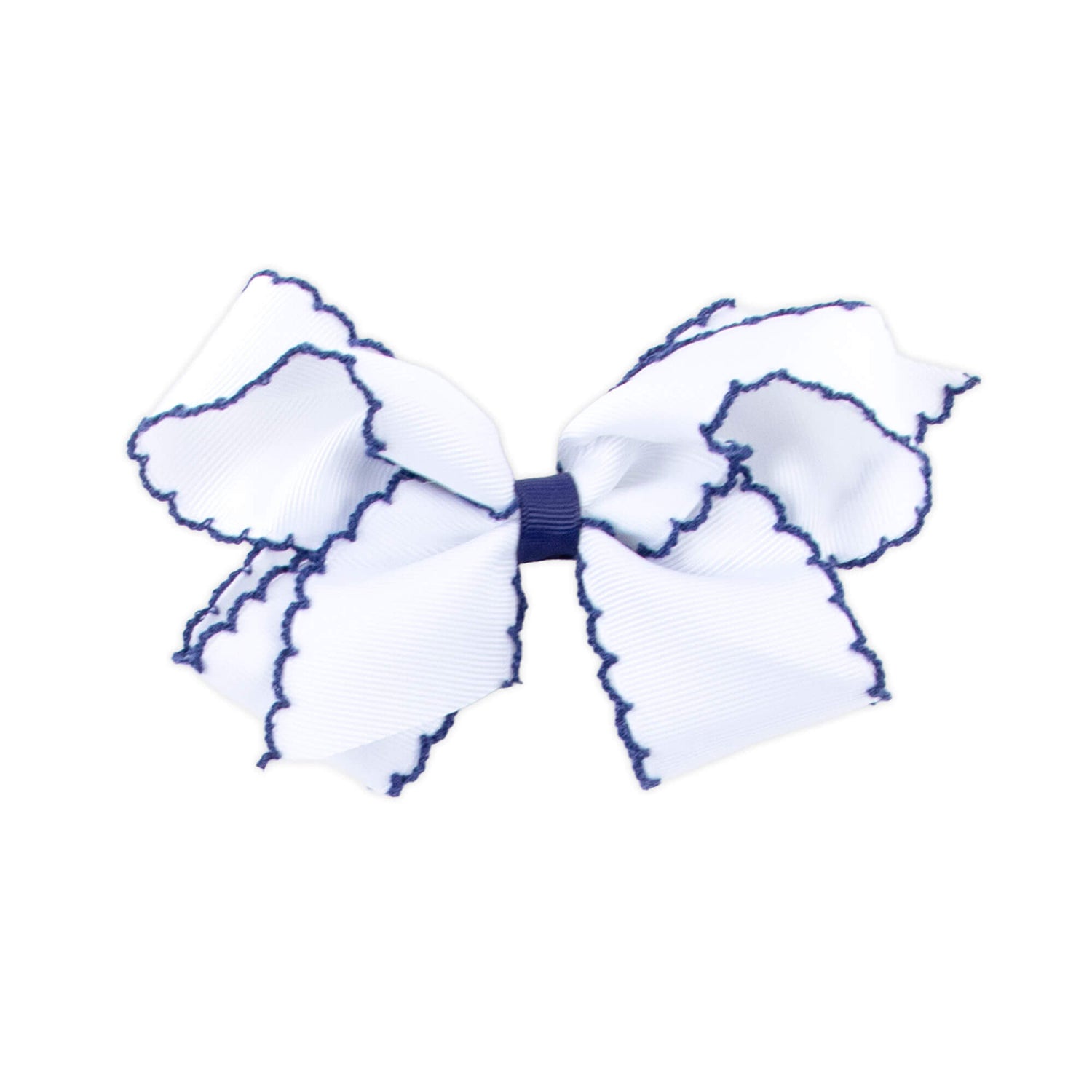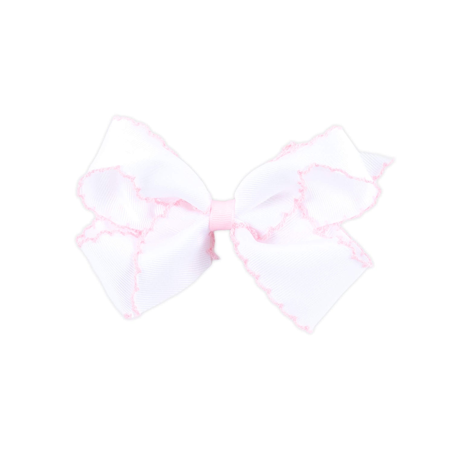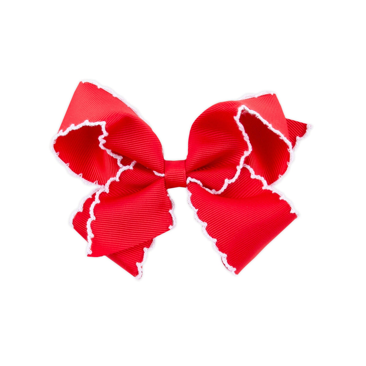 Our classic moonstitch bow is the sweetest finishing touch! Made from grosgrain ribbon with a contrasting moonstitch trim, this loop bow is attached to an alligator clip for easy wear. Perfect for school days, special occasions, or everyday wear, these bows are a must-have for adding that perfect finishing touch to any look.