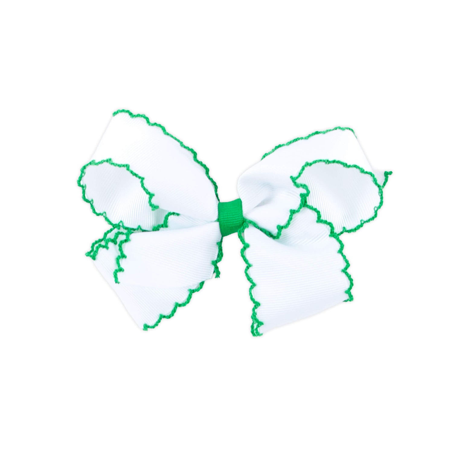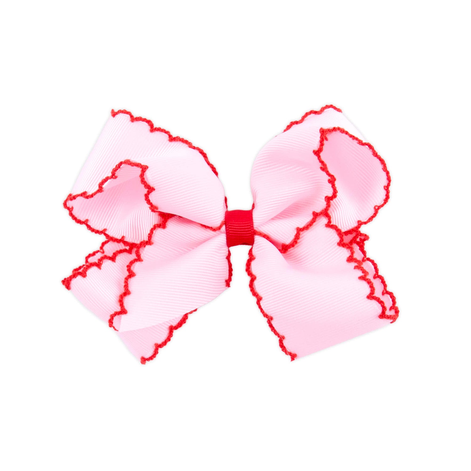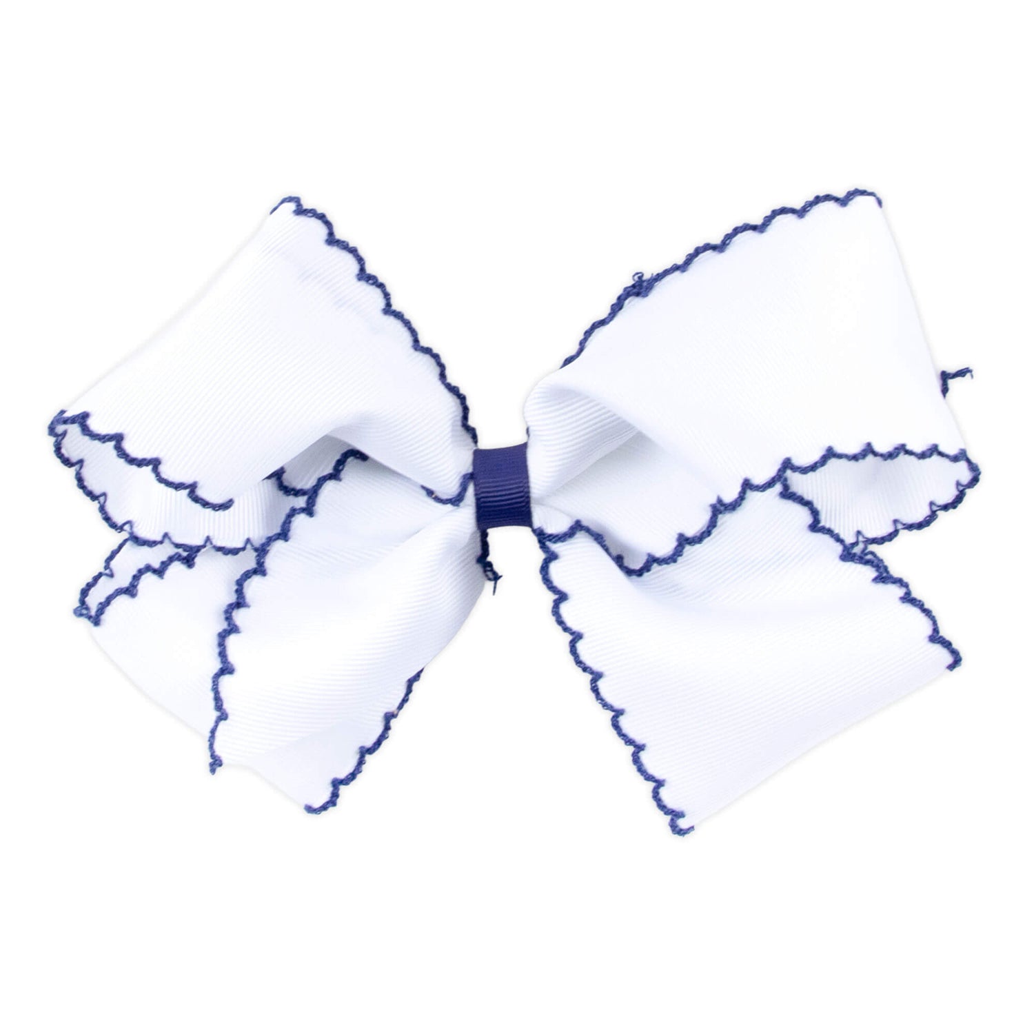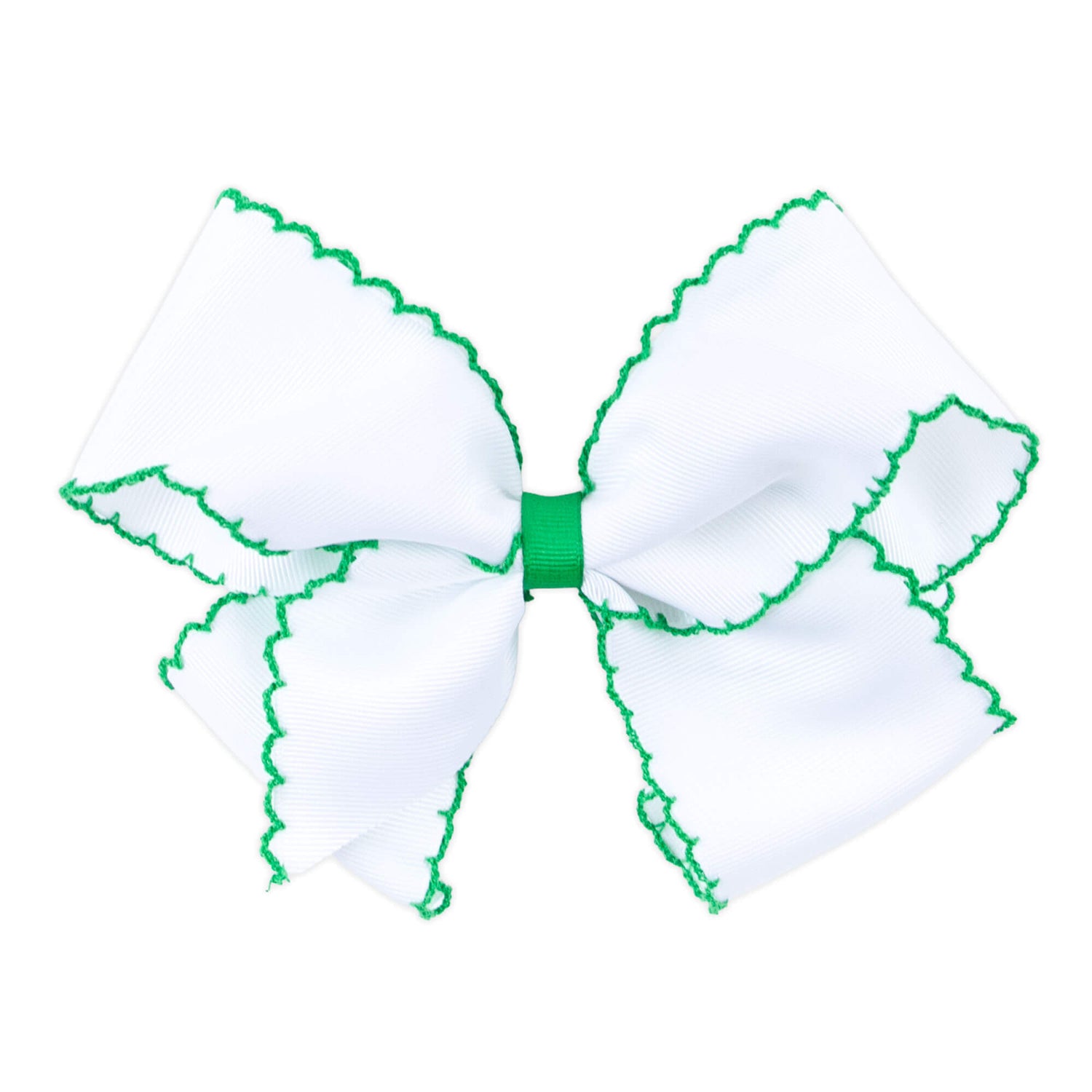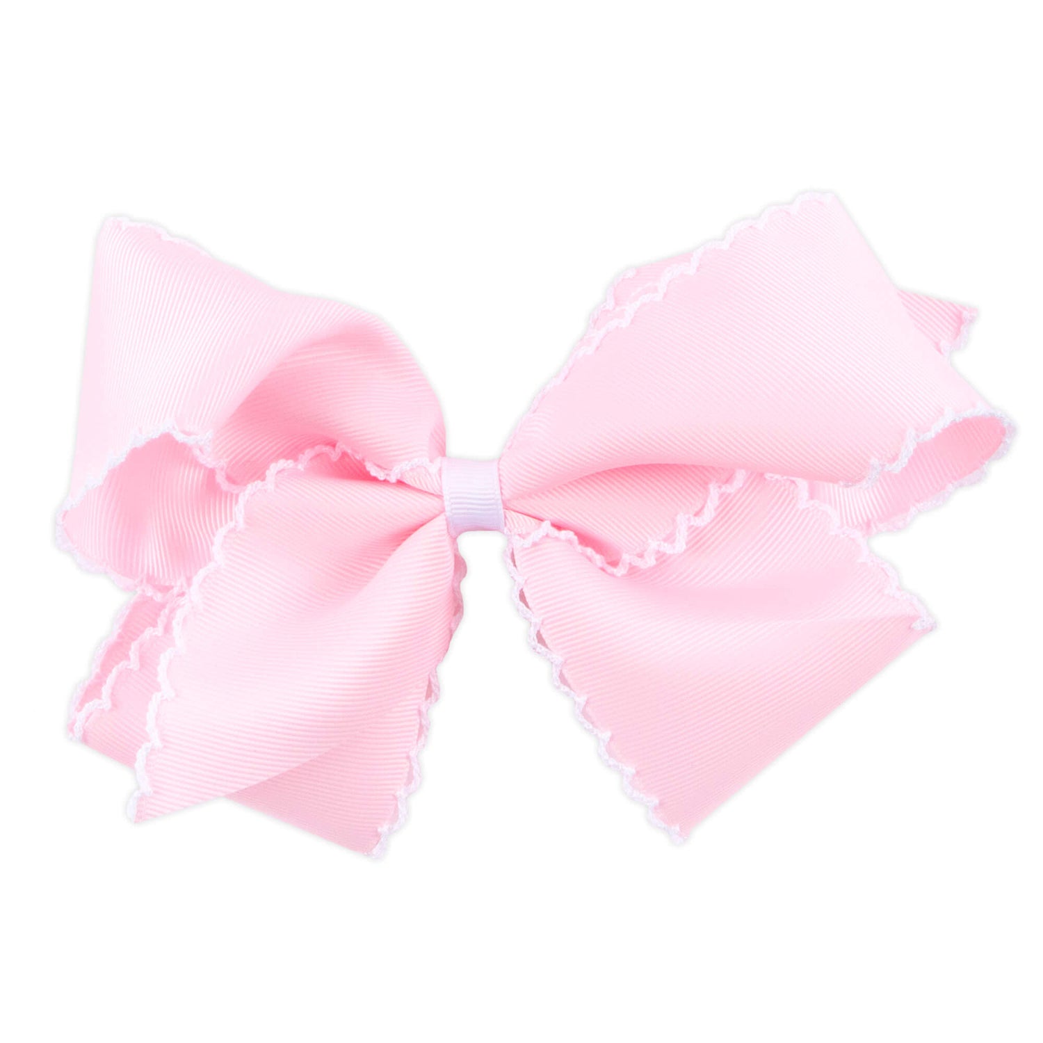 Our classic moonstitch bow is the sweetest finishing touch! Made from grosgrain ribbon with a contrasting moonstitch trim, this loop bow is attached to an alligator clip for easy wear. Perfect for school days, special occasions, or everyday wear, these bows are a must-have for adding that perfect finishing touch to any look.