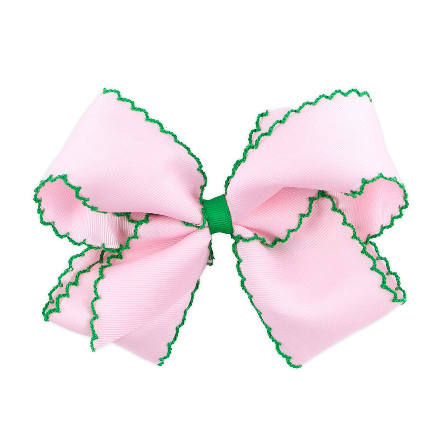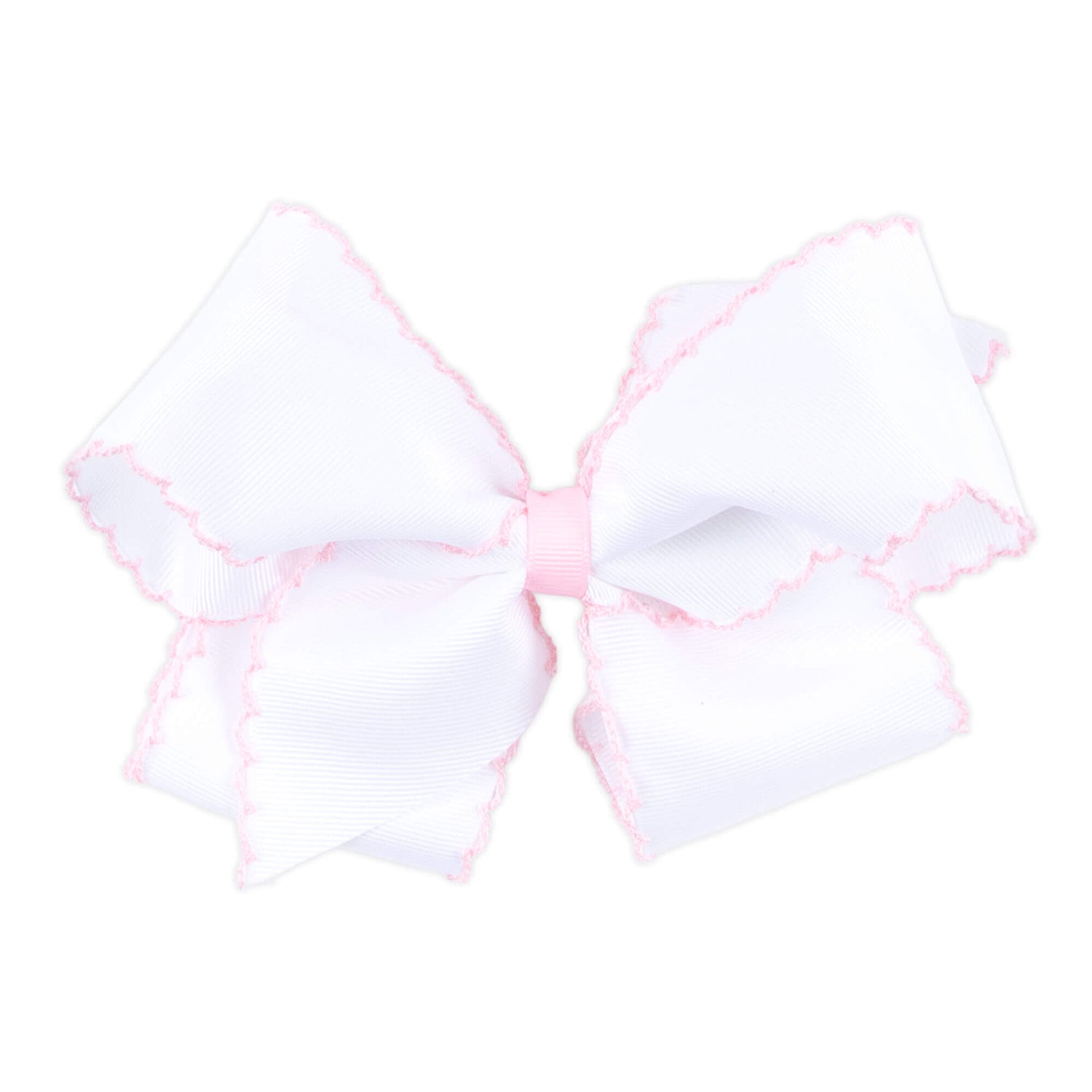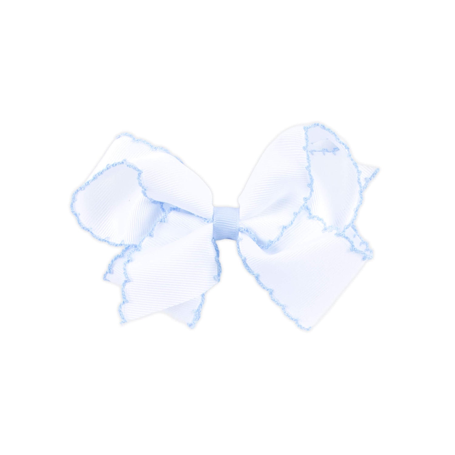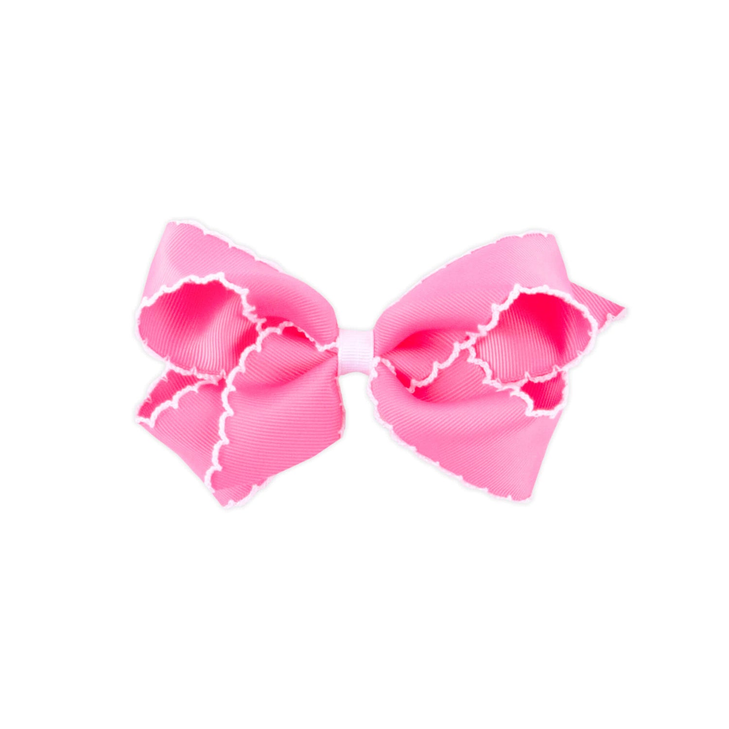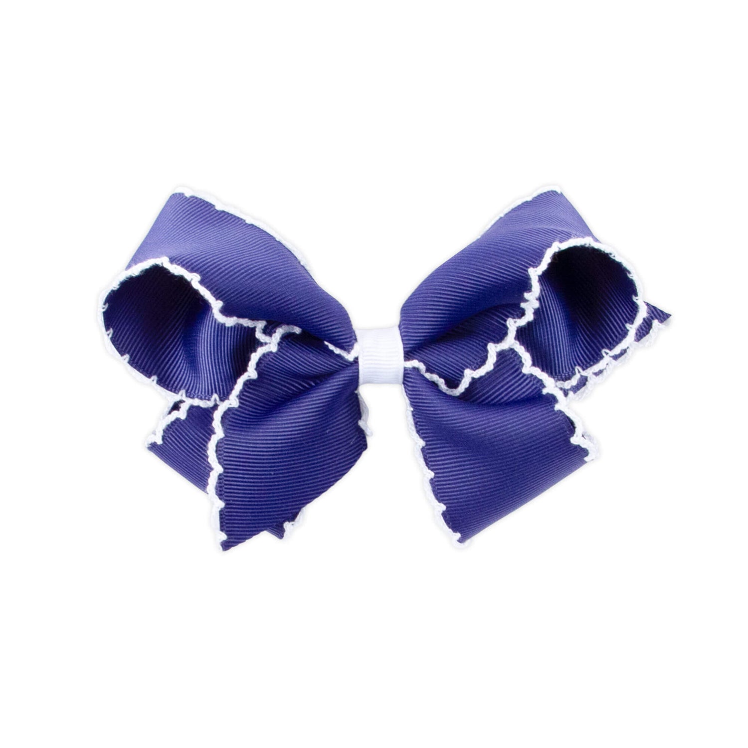 Our classic moonstitch bow is the sweetest finishing touch! Made from grosgrain ribbon with a contrasting moonstitch trim, this loop bow is attached to an alligator clip for easy wear. Perfect for school days, special occasions, or everyday wear, these bows are a must-have for adding that perfect finishing touch to any look.