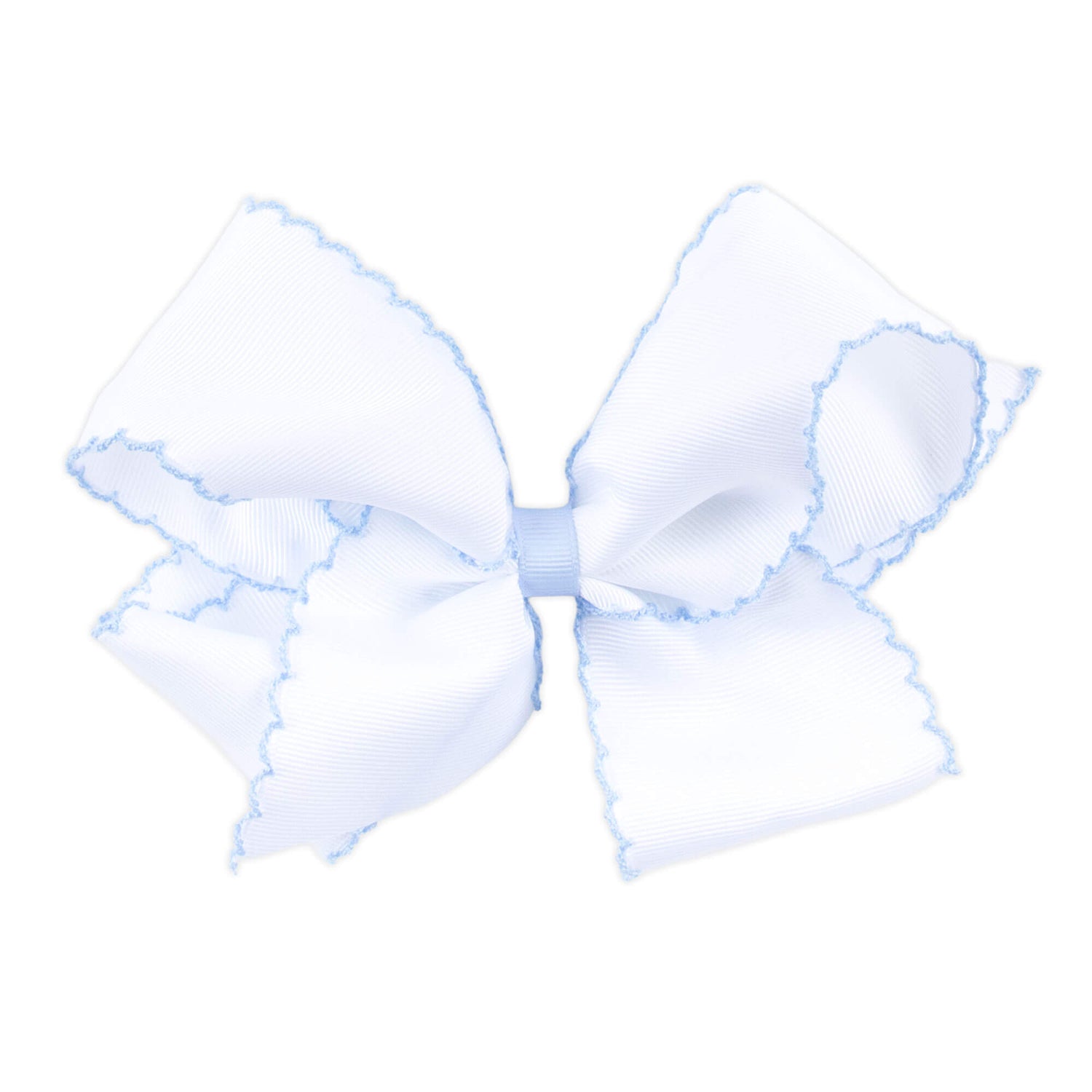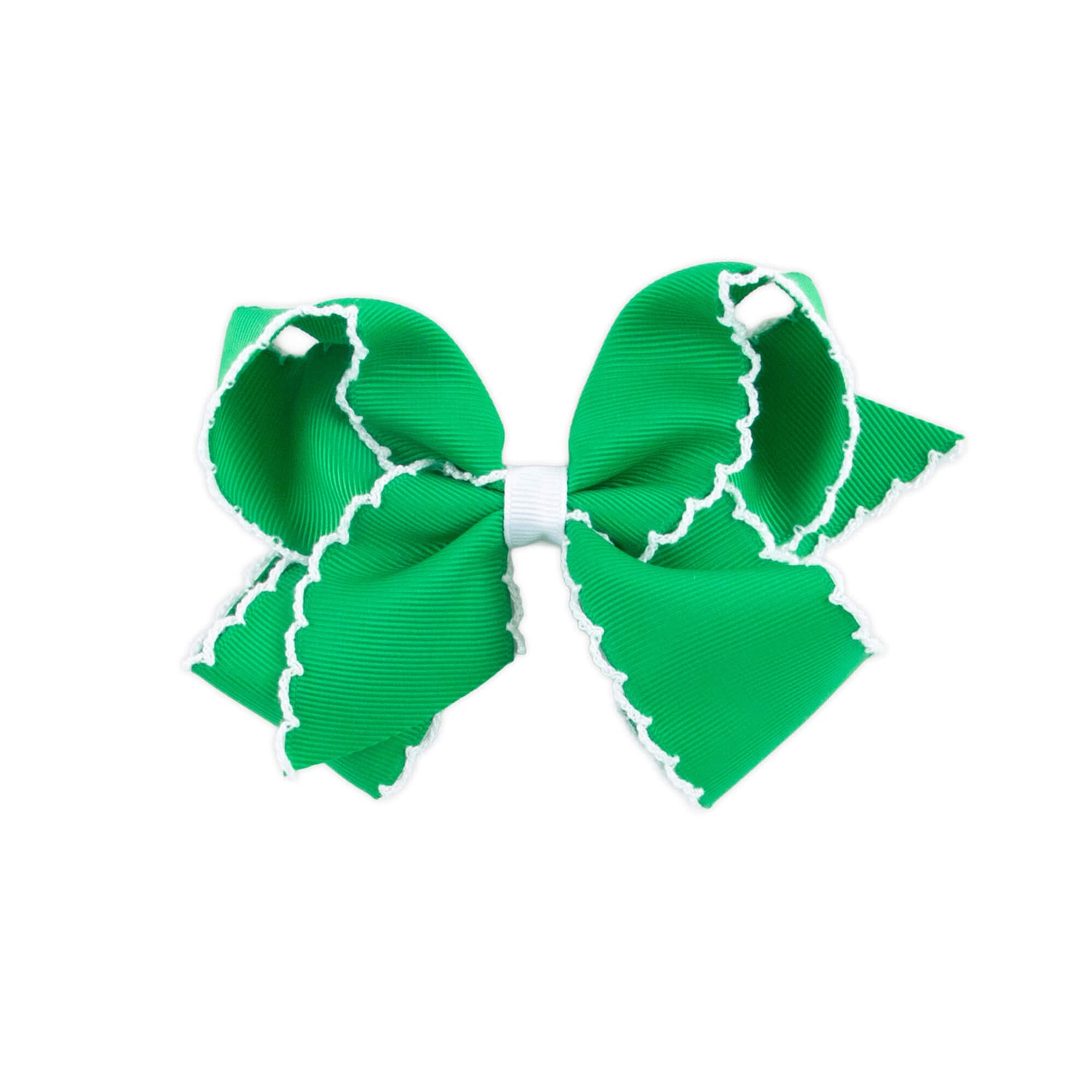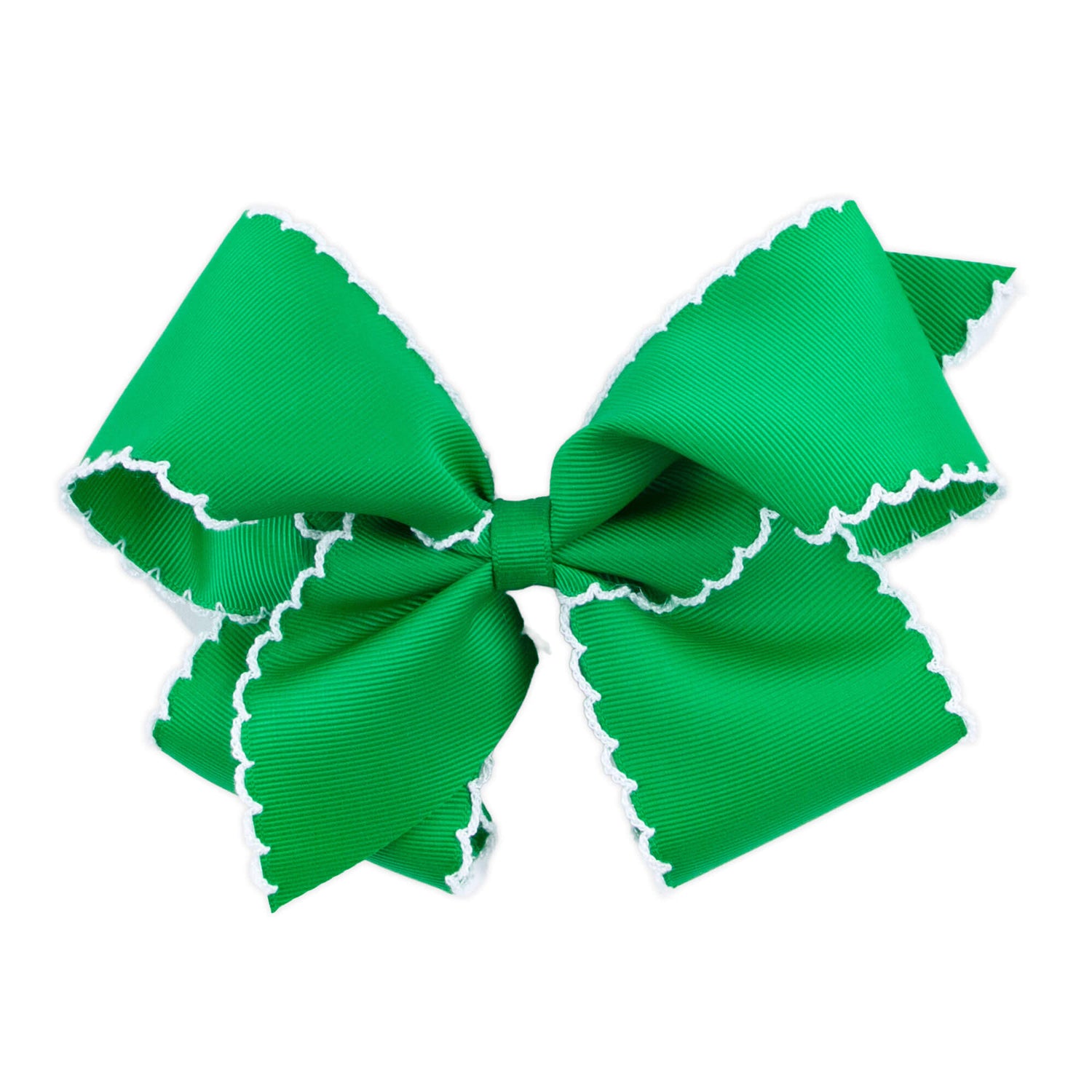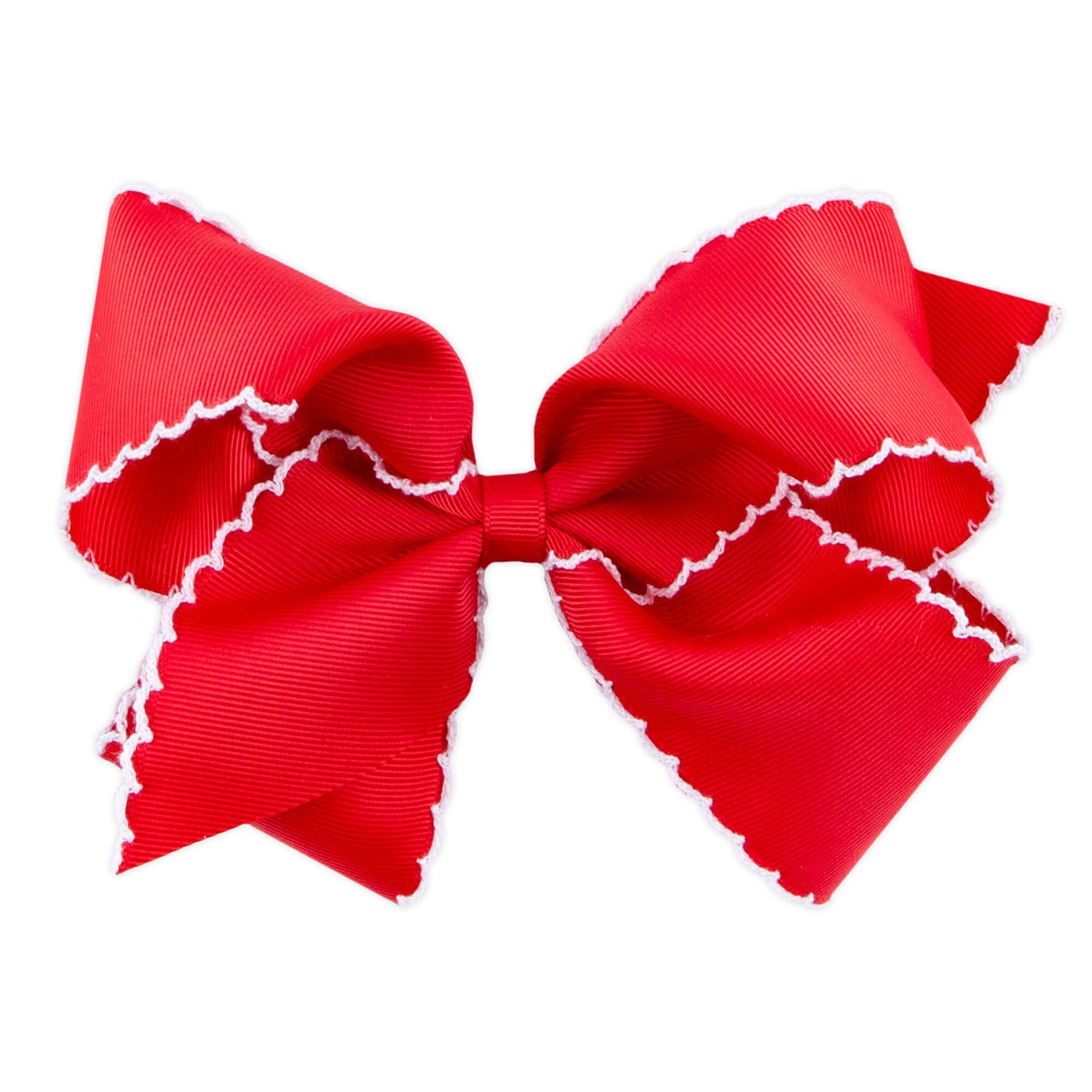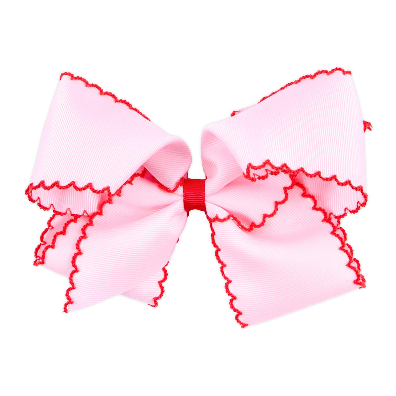 Our classic moonstitch bow is the sweetest finishing touch! Made from grosgrain ribbon with a contrasting moonstitch trim, this loop bow is attached to an alligator clip for easy wear. Perfect for school days, special occasions, or everyday wear, these bows are a must-have for adding that perfect finishing touch to any look.