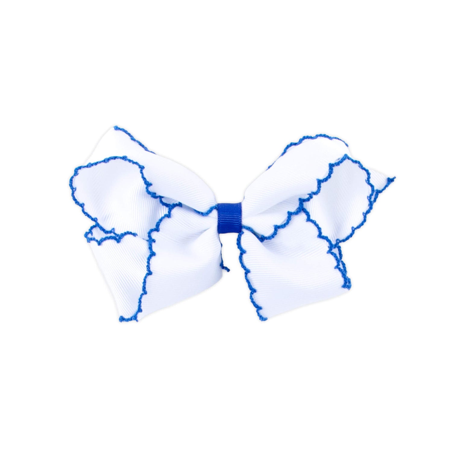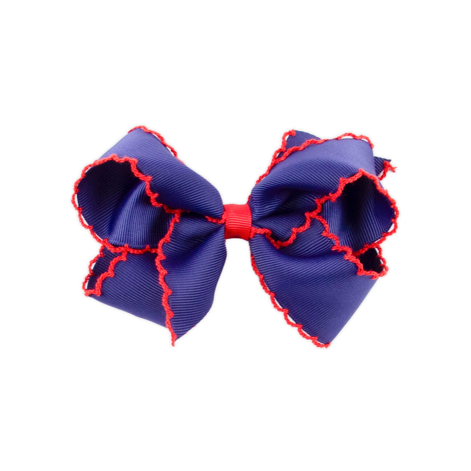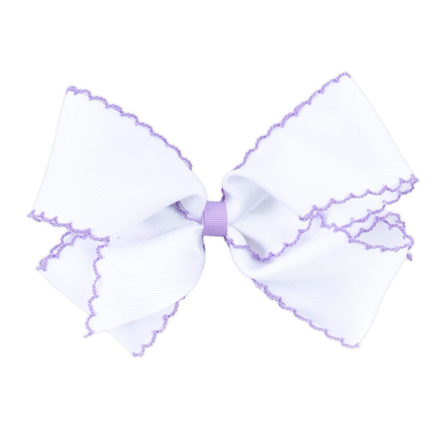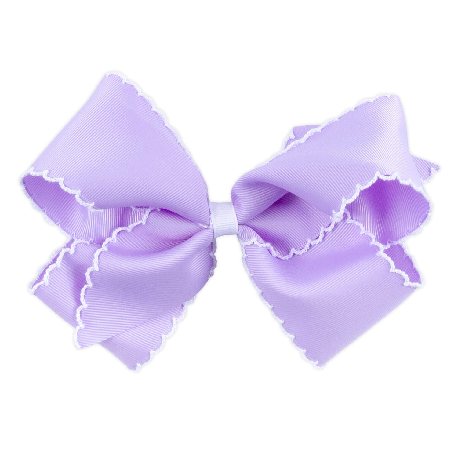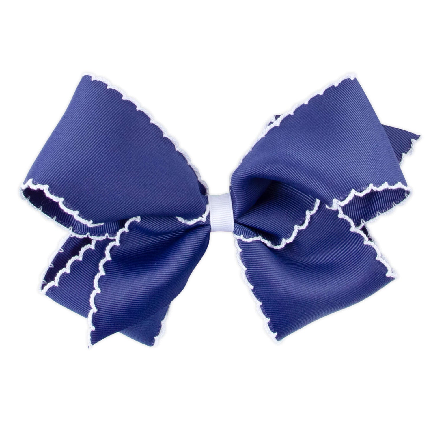 Our classic moonstitch bow is the sweetest finishing touch! Made from grosgrain ribbon with a contrasting moonstitch trim, this loop bow is attached to an alligator clip for easy wear. Perfect for school days, special occasions, or everyday wear, these bows are a must-have for adding that perfect finishing touch to any look.