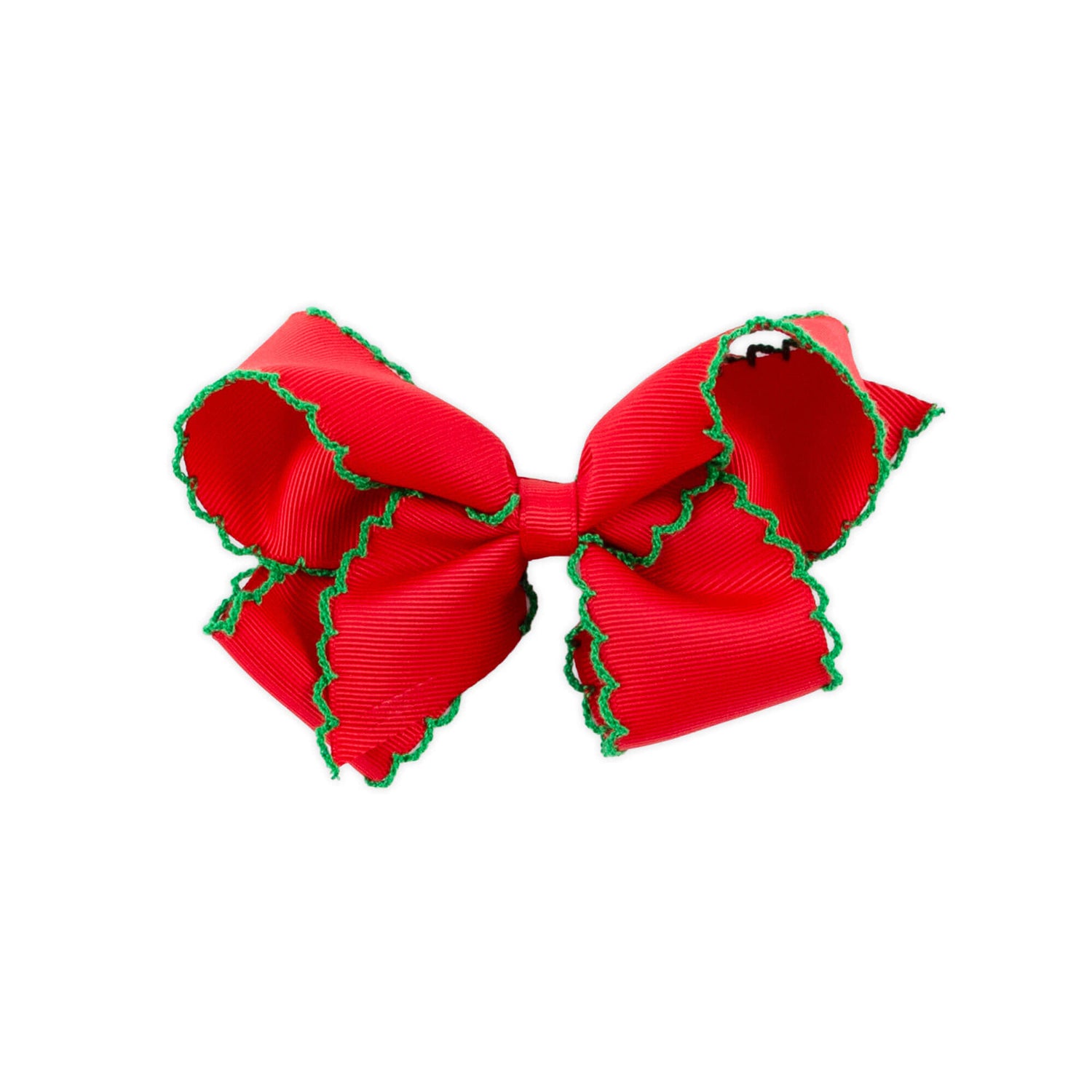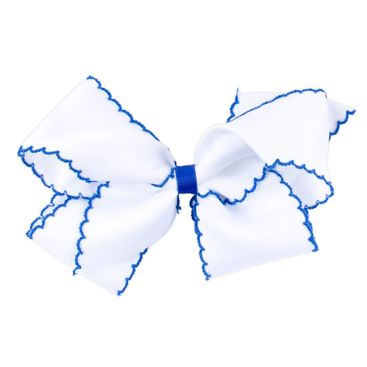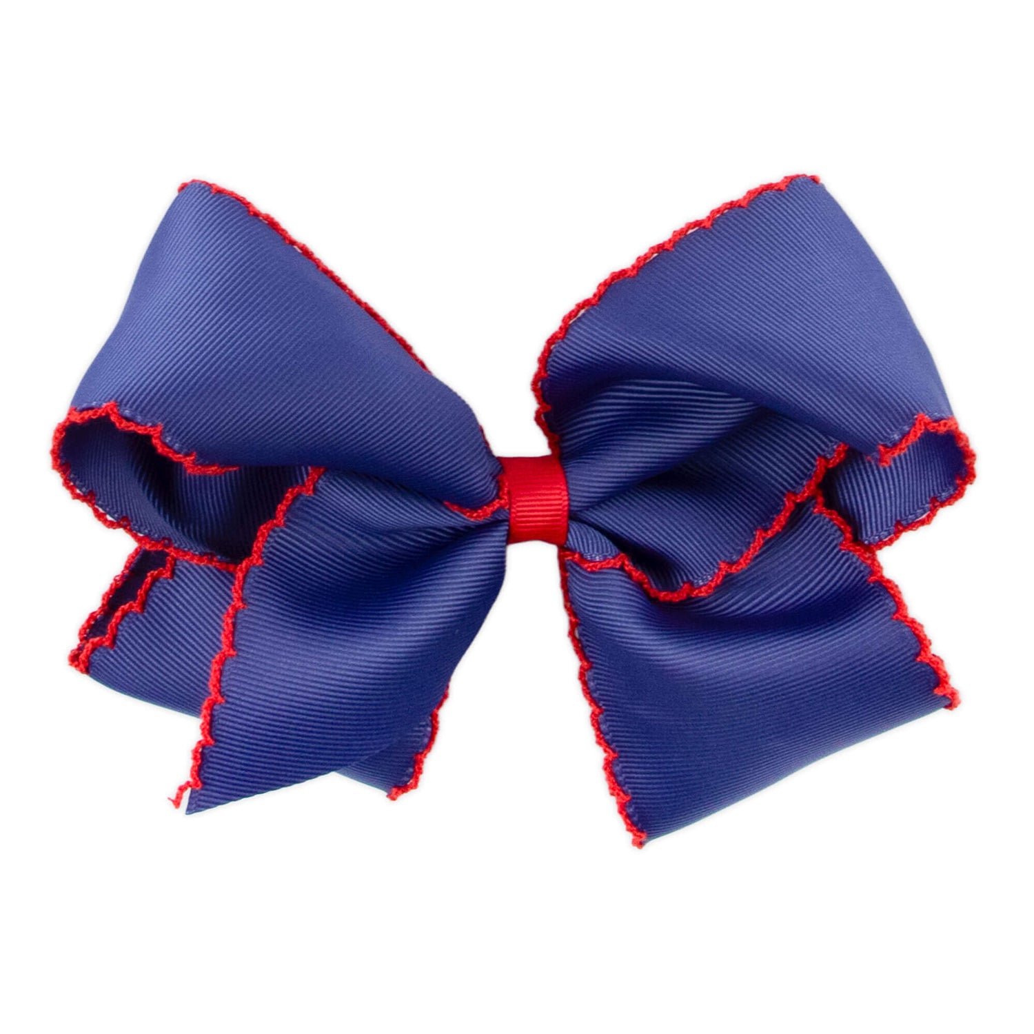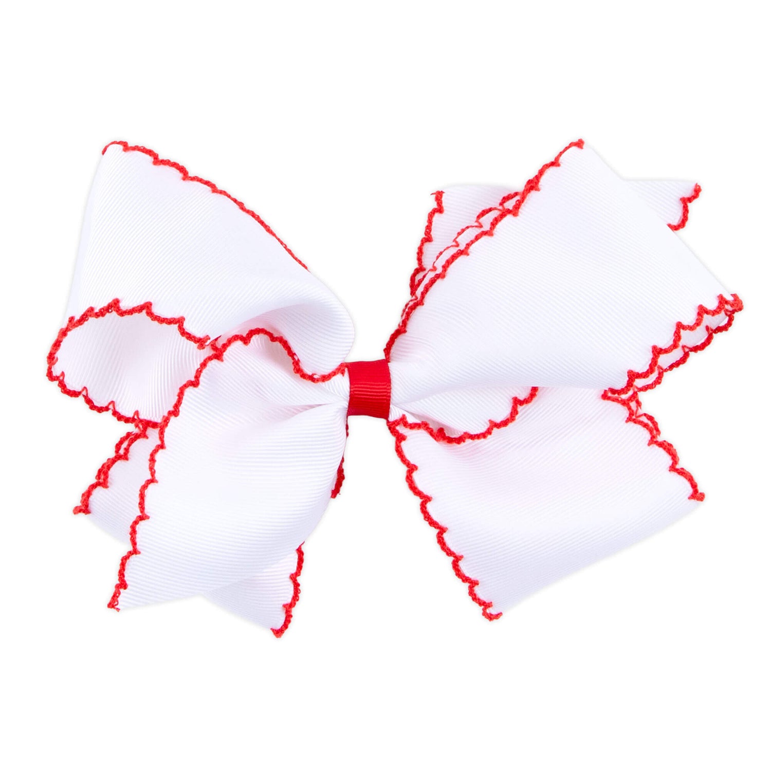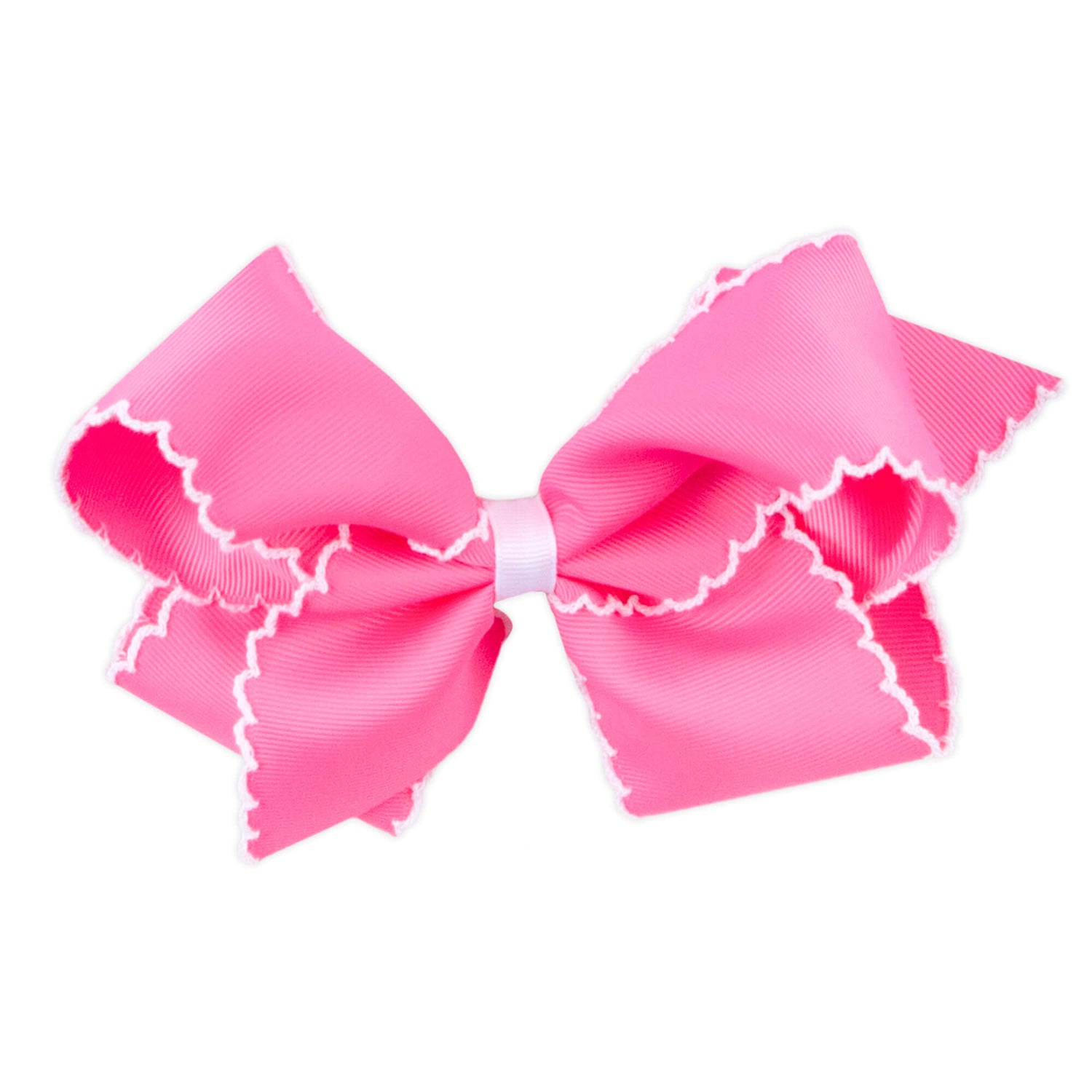 Our classic moonstitch bow is the sweetest finishing touch! Made from grosgrain ribbon with a contrasting moonstitch trim, this loop bow is attached to an alligator clip for easy wear. Perfect for school days, special occasions, or everyday wear, these bows are a must-have for adding that perfect finishing touch to any look.