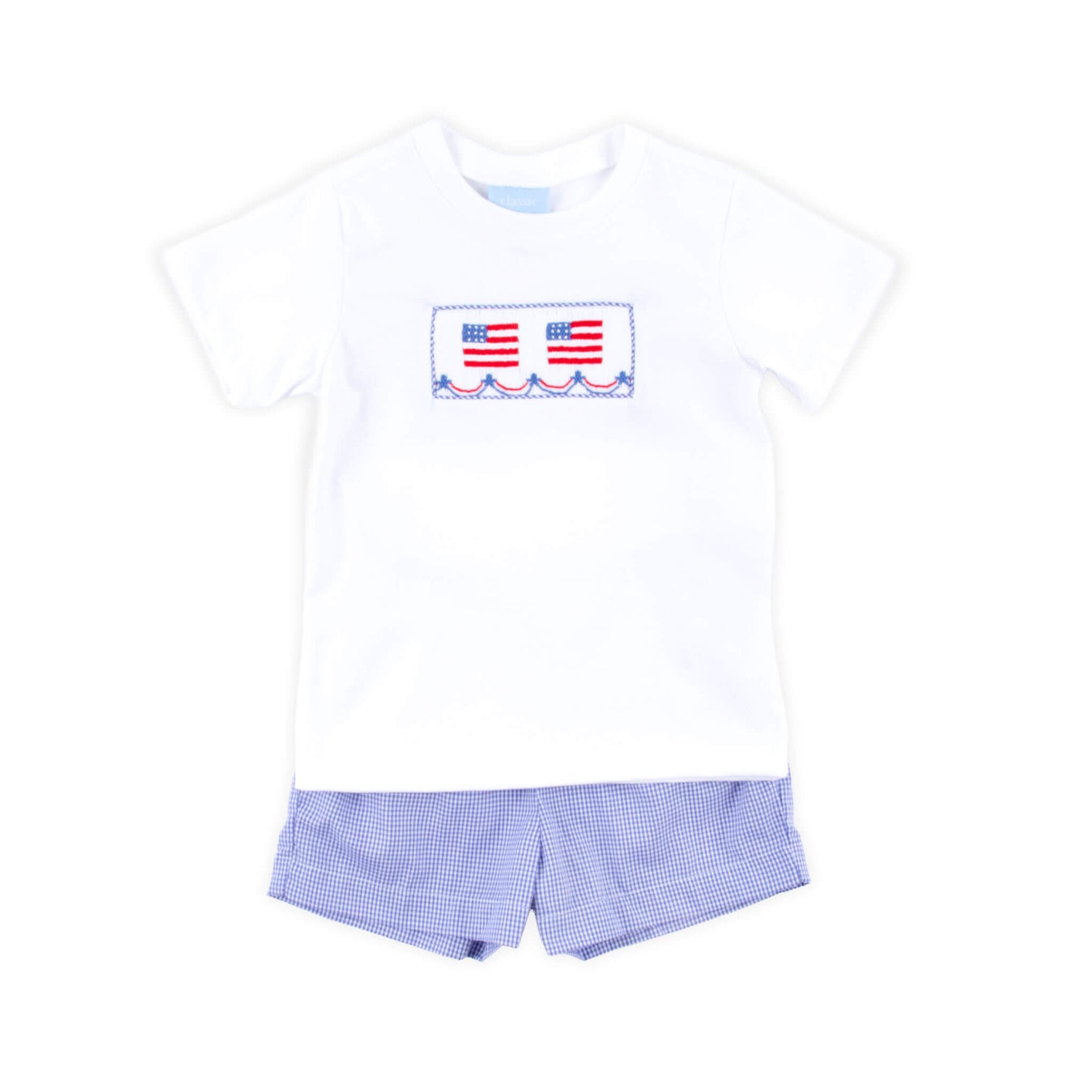 Flag Smocked White and Royal Short Set