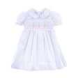 Pink Cross Smocked White Pique Collared Dress