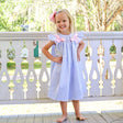 This Spring In Blue Smocked Bow Dress is the sweetest outfit. Designed from blue gingham seersucker fabric, this dress features delicate geometric hand-smocking and is adorned with pink satin bows. It features angel-style sleeves with pink picot trim, adding to its charm.