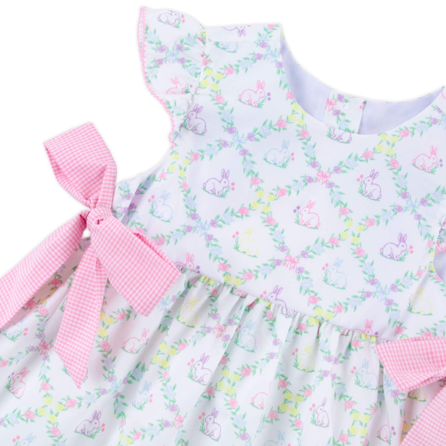 This Easter Floral Pink Avery Dress is full of Easter fun! The Avery-style dress features a beautiful Easter floral print, flutter sleeves, and sweet side-tie bows. Add a monogram for a personalized touch!