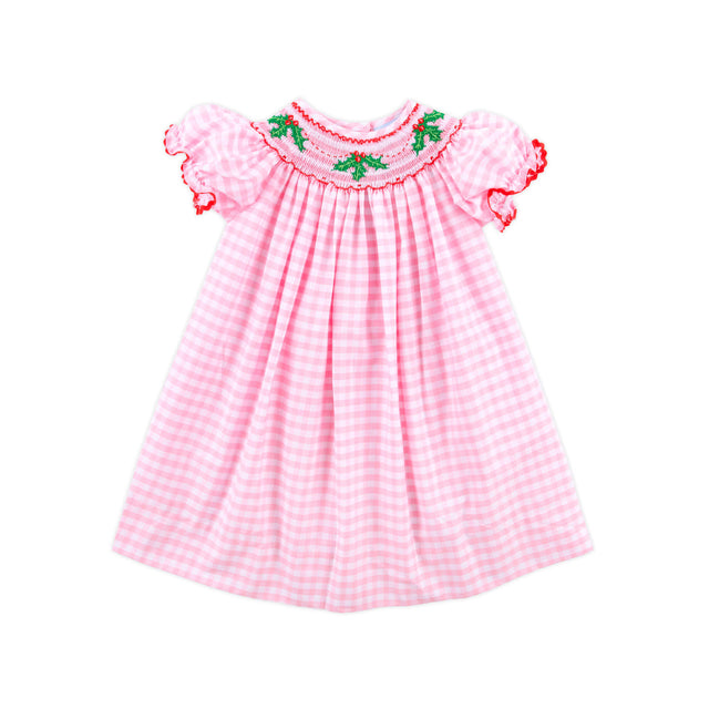 Holly Jolly Smocked Pink Gingham Bishop Dress