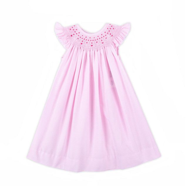 Cute Pink Stripe Smocked Angel Sleeve Dress