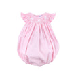 Hop into Easter fun with our Hop Hop Bunnies Smocked Pink Gingham Angel Sleeve Bubble! This darling pink gingham bubble features hand-smocked hopping bunnies and fluttery angel sleeves trimmed with pink picot. Snap in stride for easy changes. Perfect for Easter celebrations and springtime sweetness!