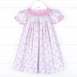 As spring unfolds, let your little one bloom with joy in our Peony Bloom Smocked Bishop Dress. Embracing the beauty of spring, this delightful dress features a charming floral print, complemented by a lovely geometric smocking. The dress is adorned with graceful bishop sleeves, featuring dainty pink picot trim that adds an extra touch of sweetness. It's the perfect outfit for your little one to twirl and play, capturing the essence of the blooming season in every detail.