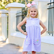 This Flower Applique Purple Stripe Caroline Dress is the perfect outfit for playtime this spring. The Caroline-style dress in purple knit stripes features ruffle pockets adorned with cute flower appliqués. Add a monogram for an adorable personalized look.