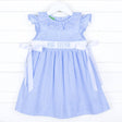 Is your little one excited to become a big sister? Celebrate in this sweet Beverly smocked "Big Sister" light blue gingham dress with white ribbon details! Ruffles and flutter sleeves make this the perfect dress for new baby sibling reveals.
