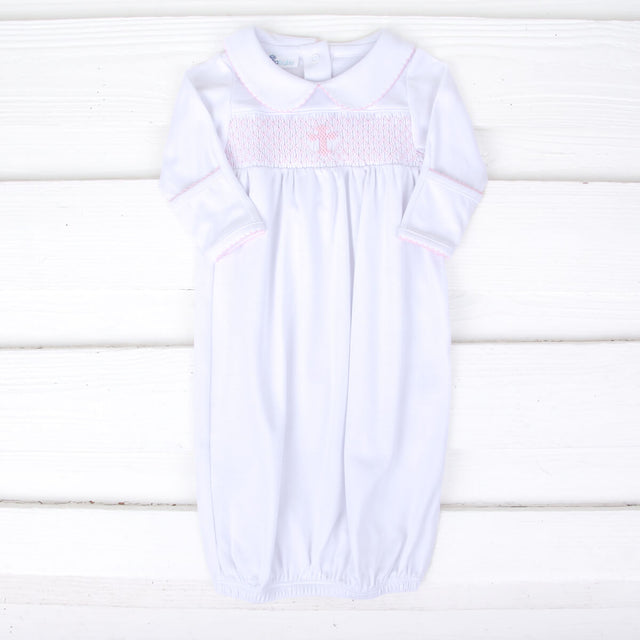 For your little blessing! This long sleeve gown is made from the softest pima cotton. Coordinates with other items in the Blessed Collection by Magnolia Baby, featuring delicate cross embroidery.