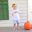 It's pumpkin season, and our Little Pumpkin Blue Gingham Smocked Short Set is ready to be picked! This adorable white knit shirt features smocked pumpkins. The set is coordinated with blue gingham waistband shorts, making it perfect for all your little one's autumn adventures.