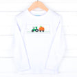Your little one will look adorable in this Pumpkin Delight Smocked White Long Sleeve Shirt, perfect for the pumpkin patch! This white long sleeve shirt features a smocked green tractor and a pumpkin, adding a delightful touch. It’s great for playtime and all your fall adventures.