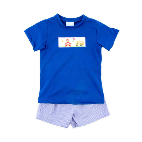 $55.53Unit price /Unavailable in this combinationSchool Bus Smocked Royal Gingham Short Set