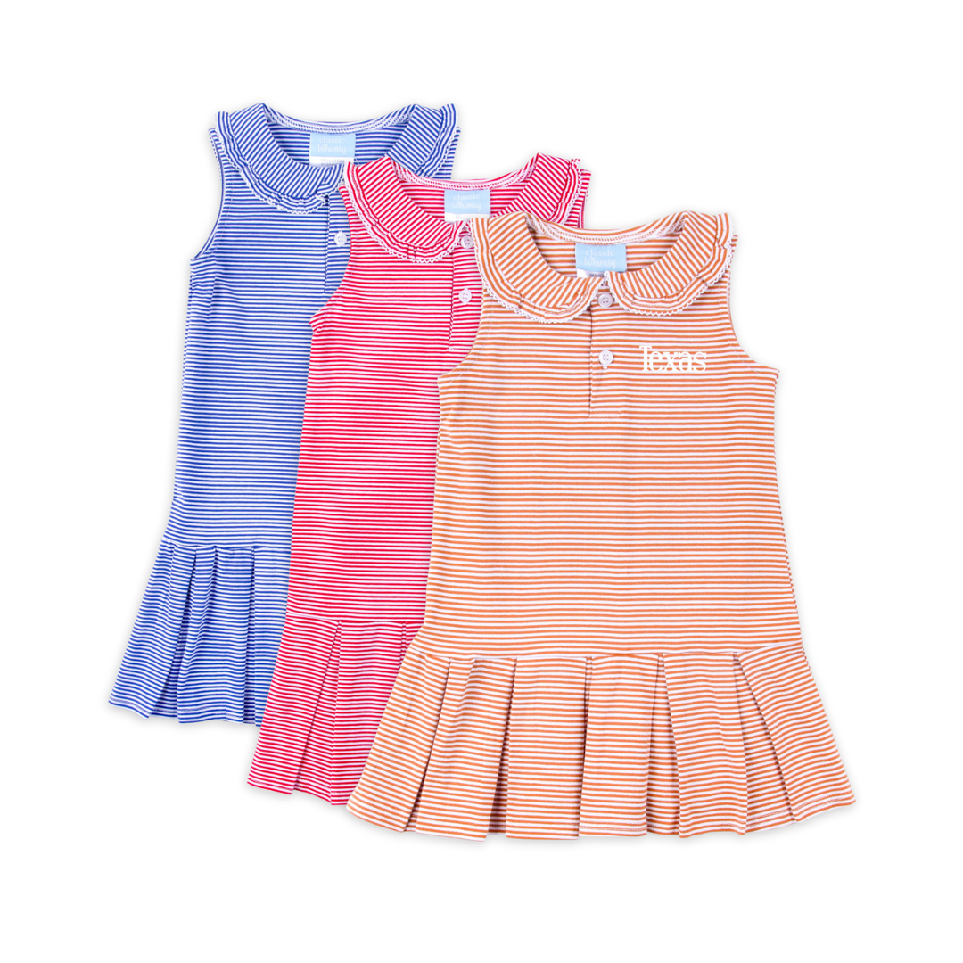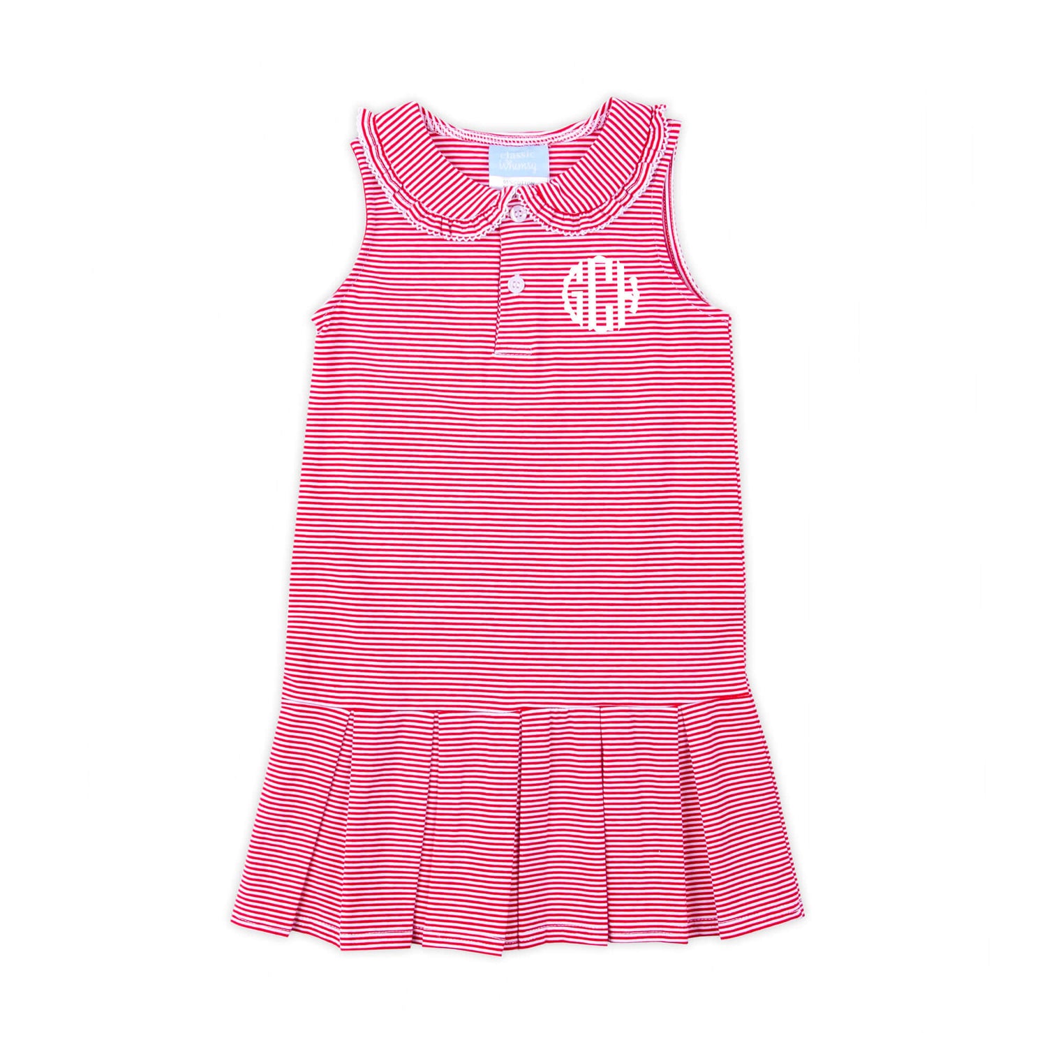 It's tennis time with our adorable Stripe Tennis Dress! This pleated knit dress features a striped fabric with ruffle trim, perfect for playtime on and off the court. Add a monogram to make it extra special!
