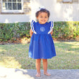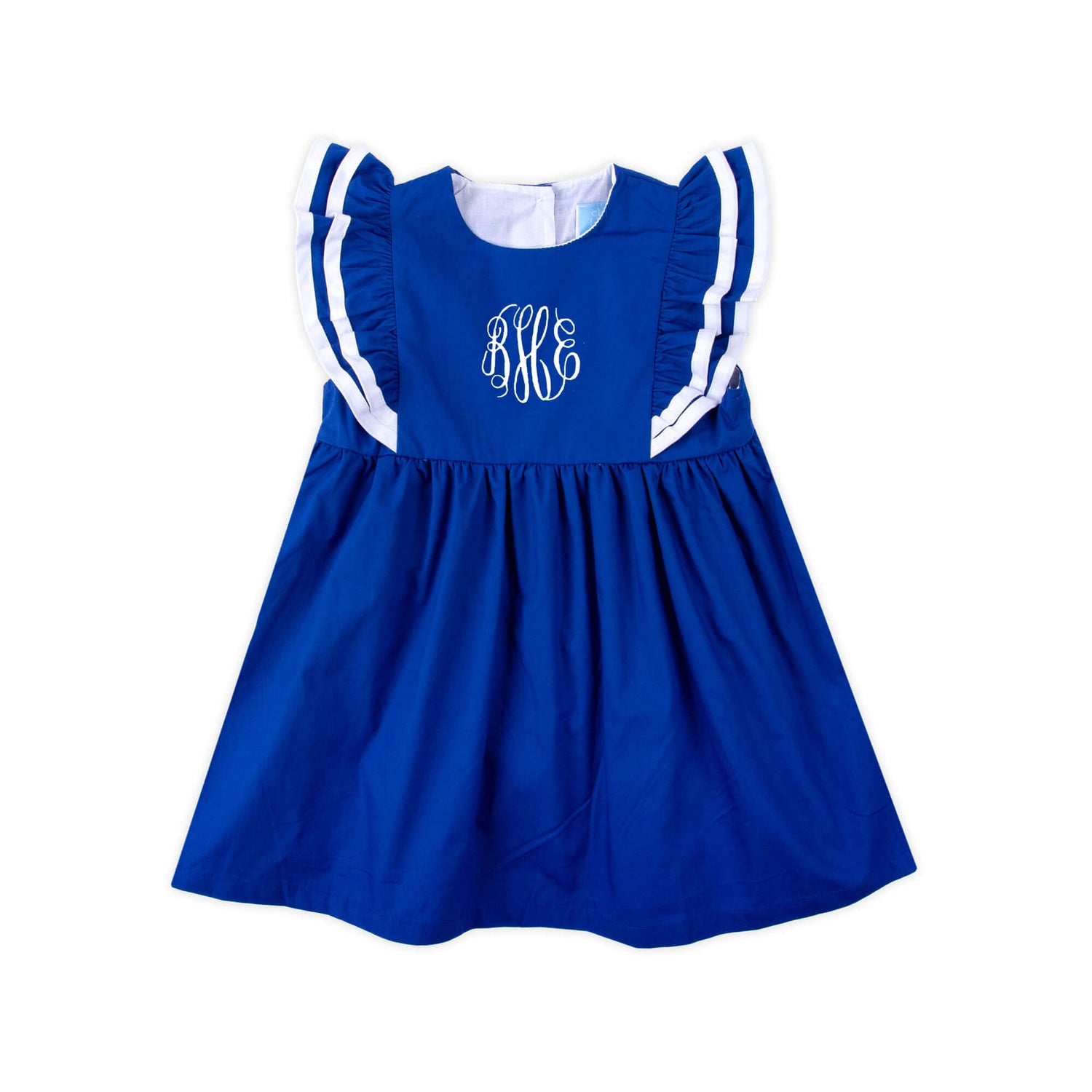 Elevate your little one's spring and summer wardrobe in our enchanting Royal Blue Alice Dress. This delightful Alice-style dress is not only perfect for any special occasion but also adds a touch of charm to everyday moments. Designed from a solid royal blue fabric, the dress features intricately designed ruffles adorned with white trim, creating a whimsical and stylish look. To make this outfit truly unique, add a monogram for a personalized touch.