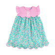 Celebrate the beauty of spring in our Floral Wonderland Turquoise Amelia Dress. This Amelia style dress features a lovely turquoise and pink floral print, soft flutter sleeves, and a scalloped hem for an extra charming touch. Ideal for spring outings, family gatherings, and special moments. Add a monogram to make this outfit even more special.