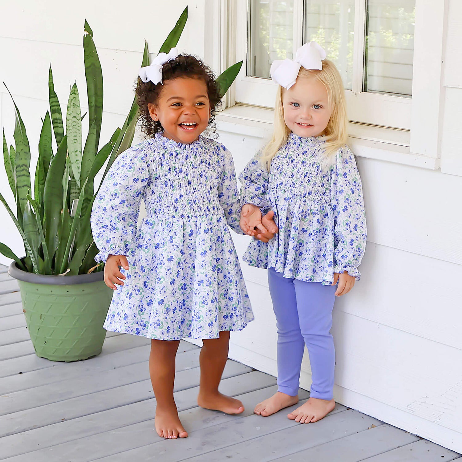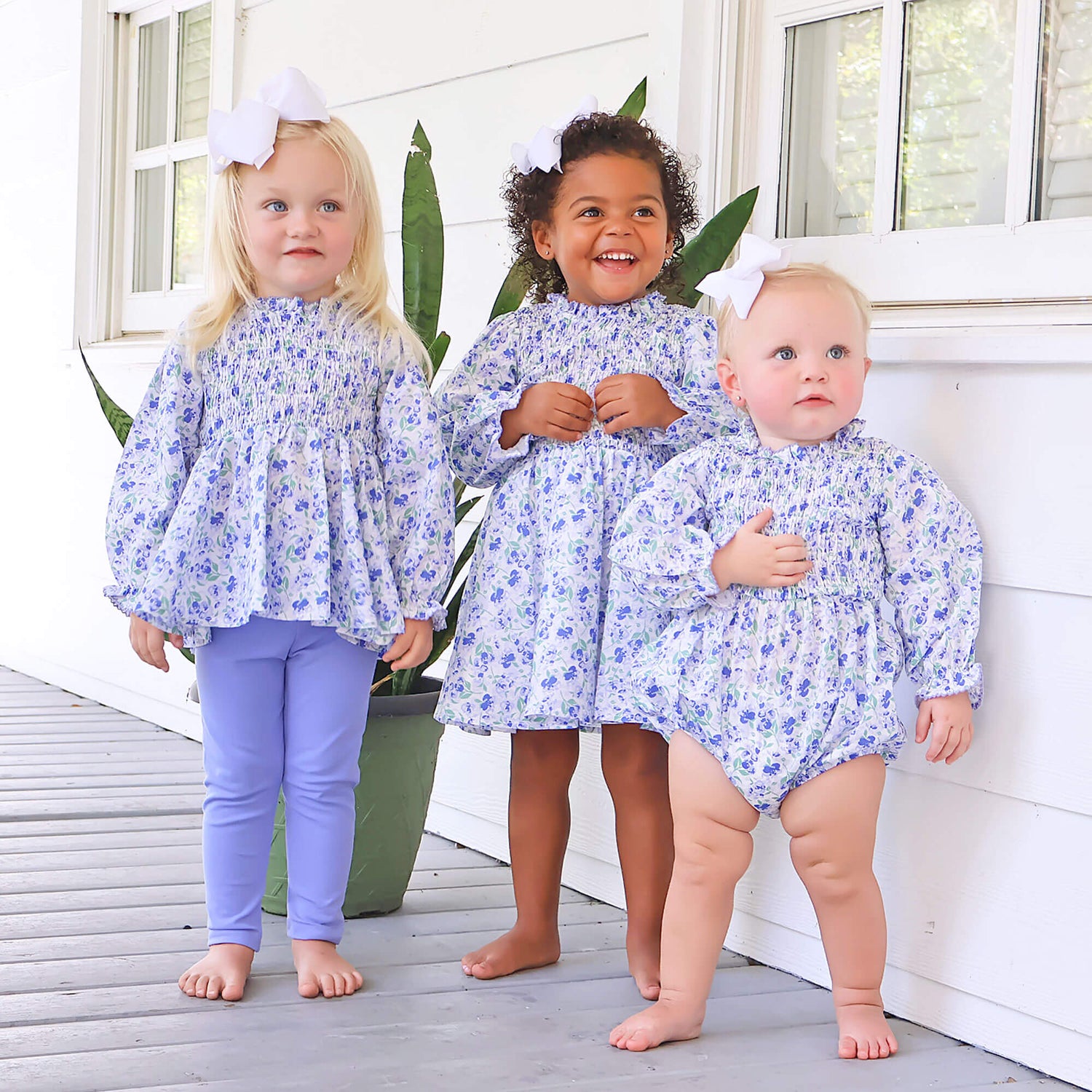 This Duke Garden Blue Ariella Dress is the perfect outfit for transitioning into fall. The Ariella-style dress features a beautiful blue floral print, a stretchable smocked bodice, and long bishop sleeves for a touch of elegance.