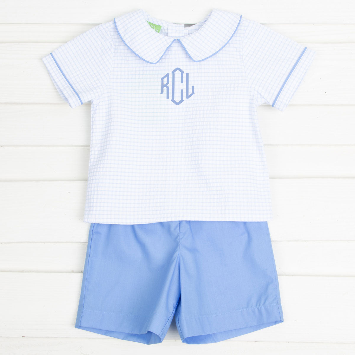 This easy outfit is customizable for extra cuteness! We think the light blue windowpane pattern is perfect for a Spring day.