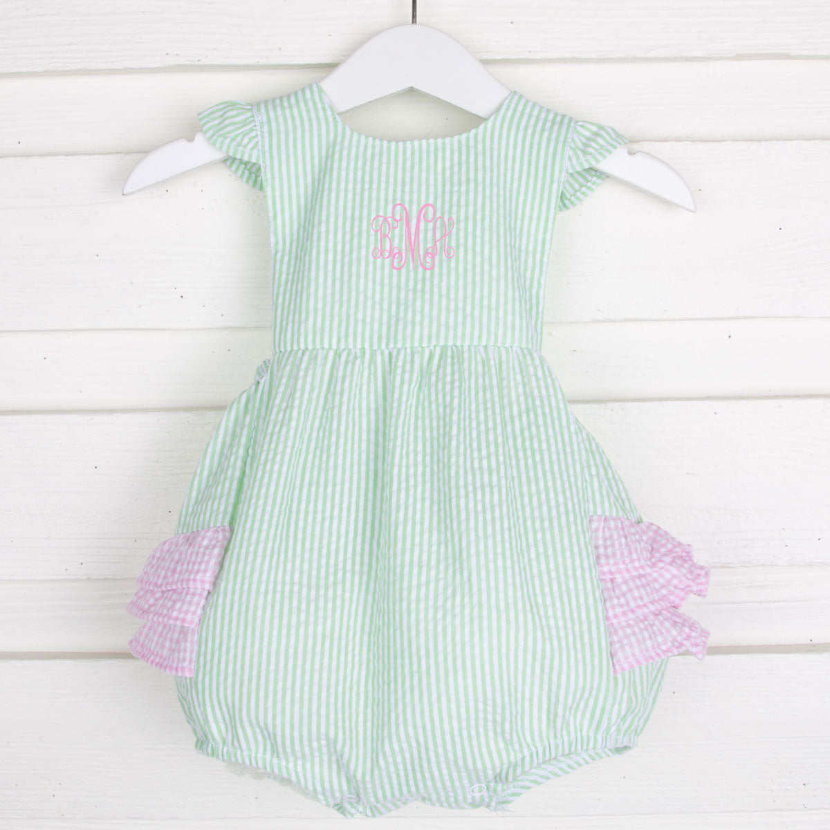 Green Stripe Seersucker Ruffle Bubble