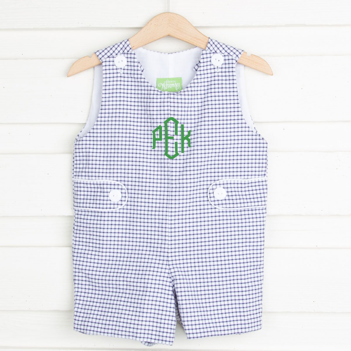 What a staple piece for a Spring wardrobe! We think your little boy will get a lot of use out of this Jon Jon! The navy seersucker fabric is adorable and comfortable enough for playtime. Snaps in stride.