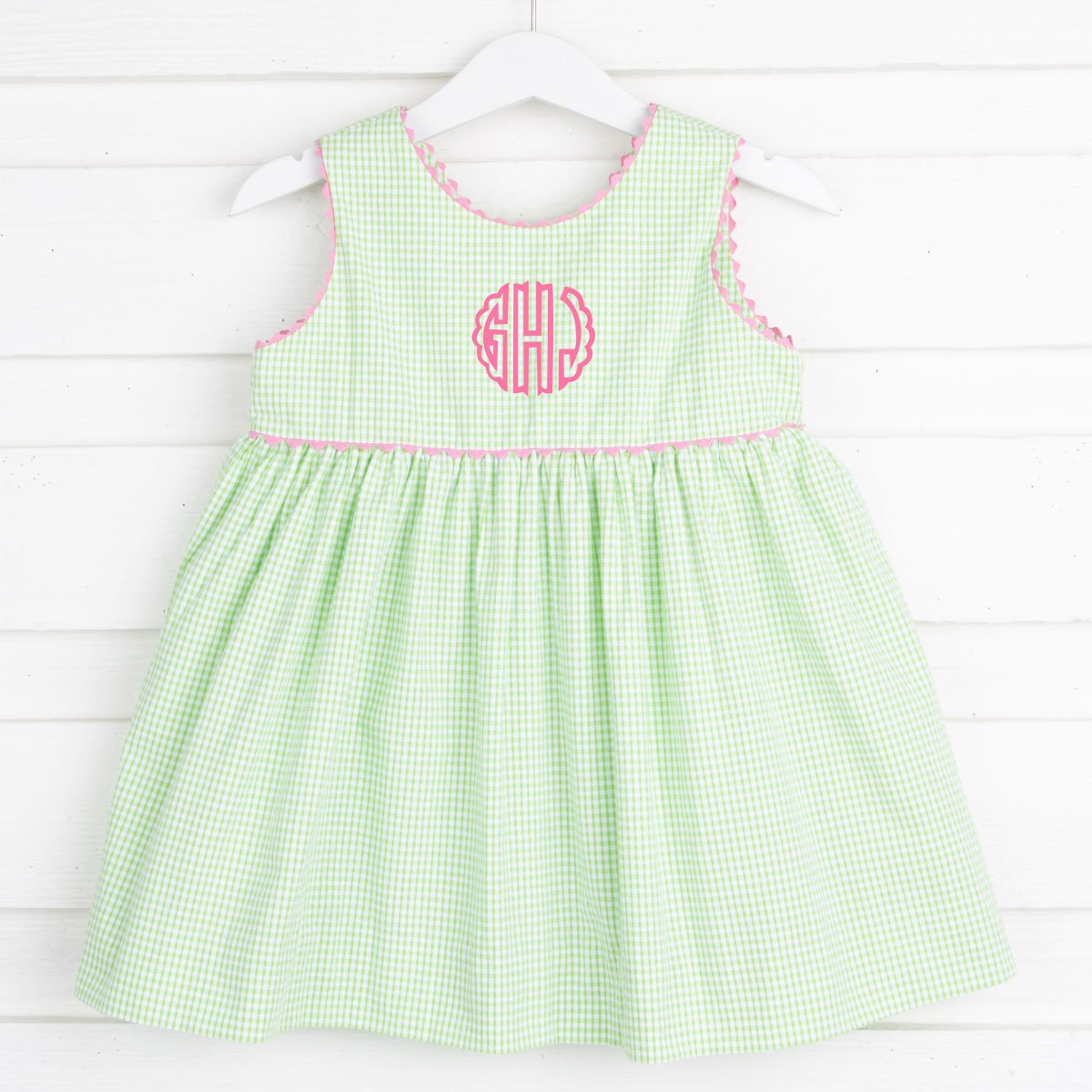 This outfit could be worn for Spring and Summer! We think the light green seersucker looks extra cute paired with a monogram, too!